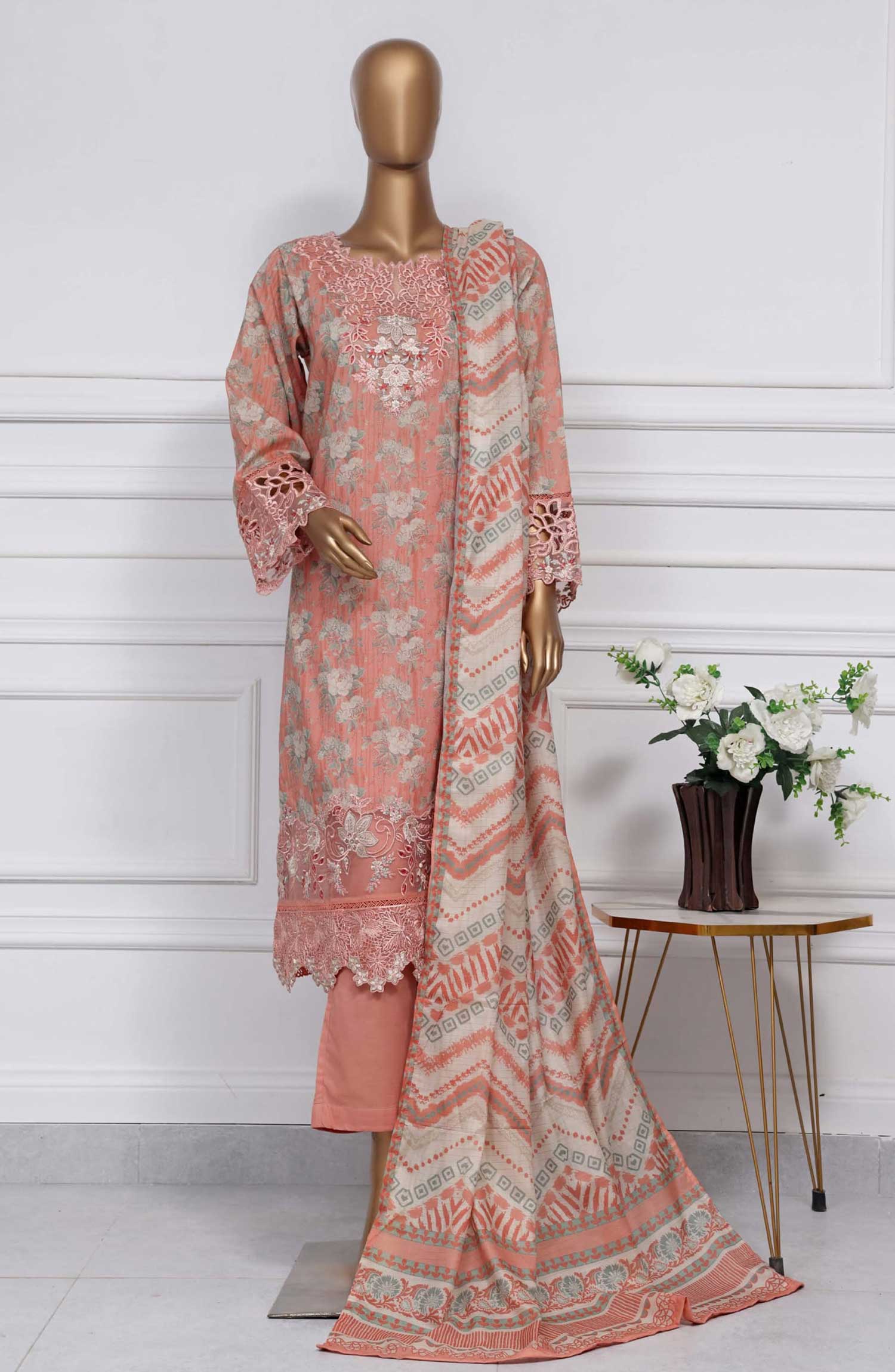 Home Raya by Sadabahar Embroidered Lawn Stitched 3 Piece - D-01 - SDB25RE - Peach - Summer Collection