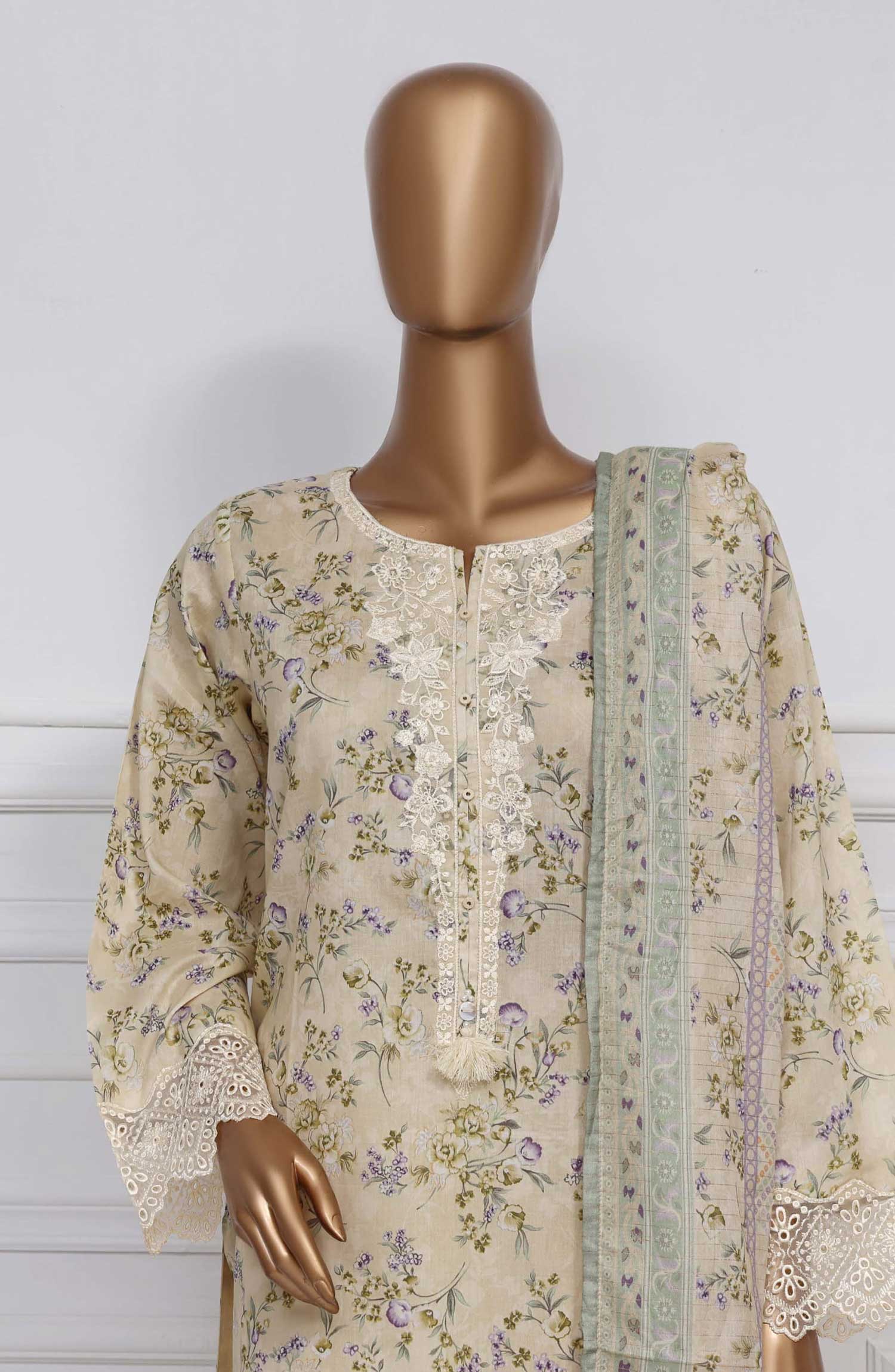 Home Raya by Sadabahar Embroidered Lawn Stitched 3 Piece - D-05 - SDB25RE - Beige - Summer Collection