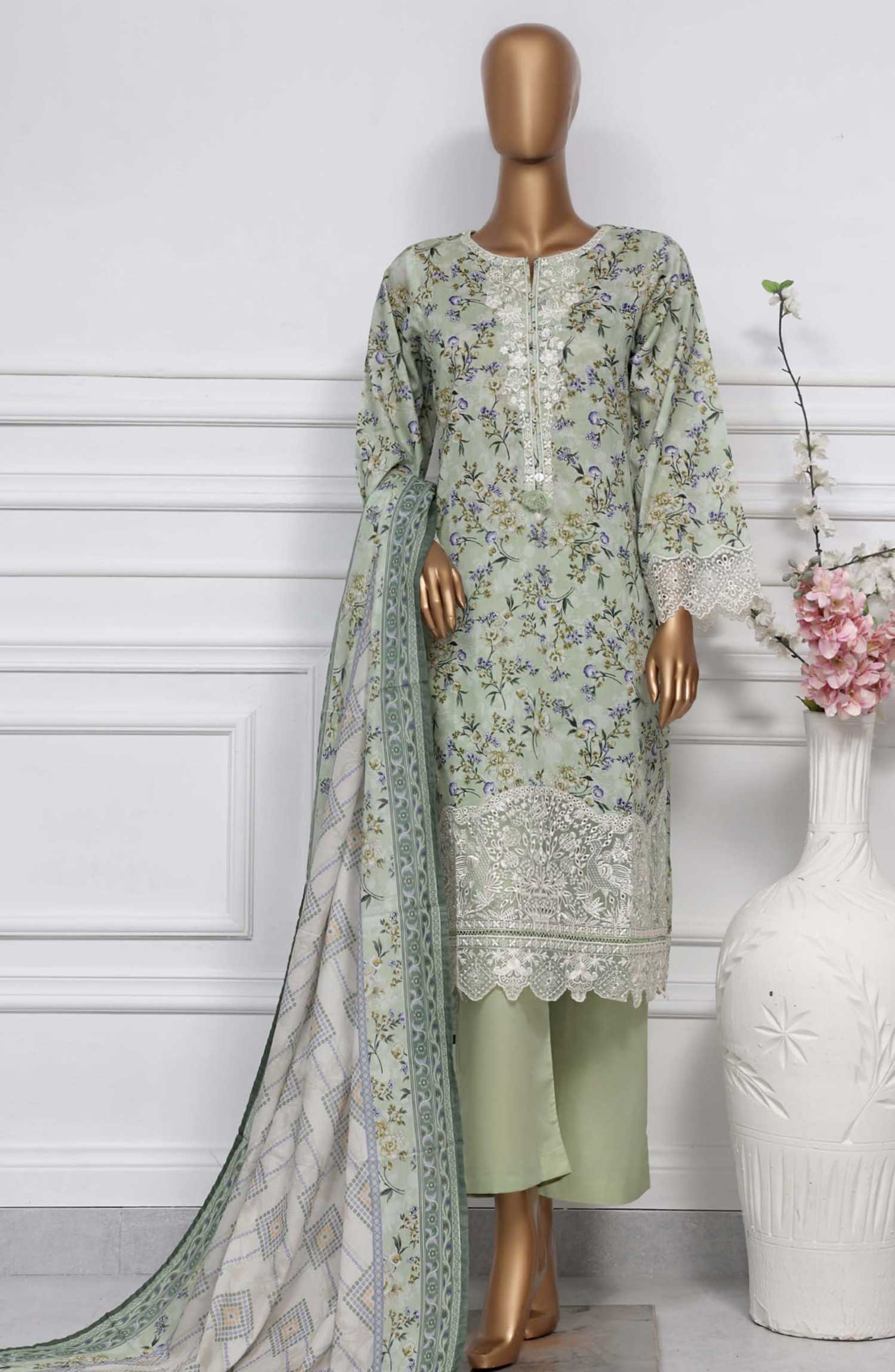 Home Raya by Sadabahar Embroidered Lawn Stitched 3 Piece - D-07 - SDB25RE - Green - Summer Collection