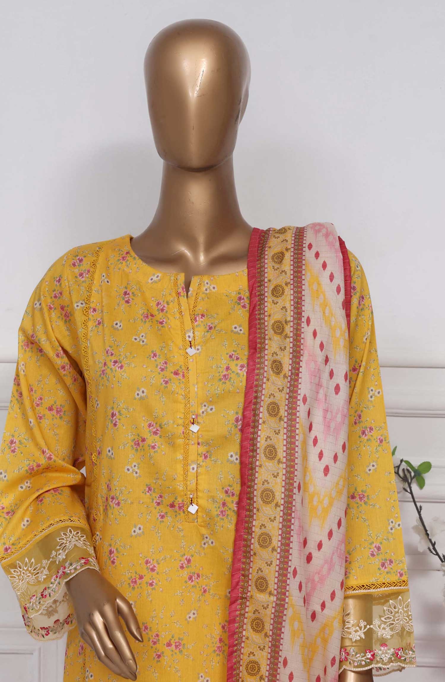 Home Raya by Sadabahar Embroidered Lawn Stitched 3 Piece - D-08 - SDB25RE - Yellow - Summer Collection