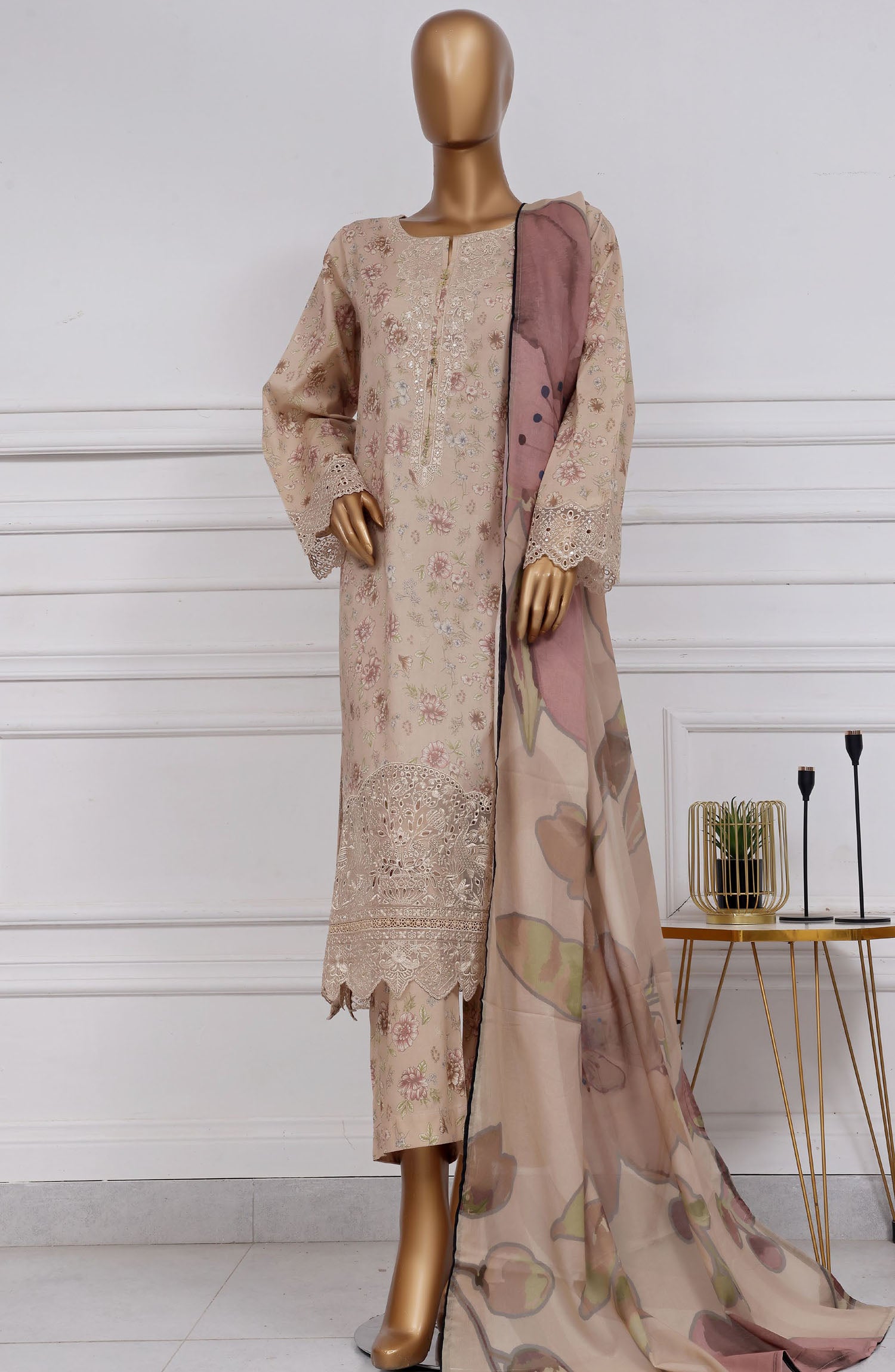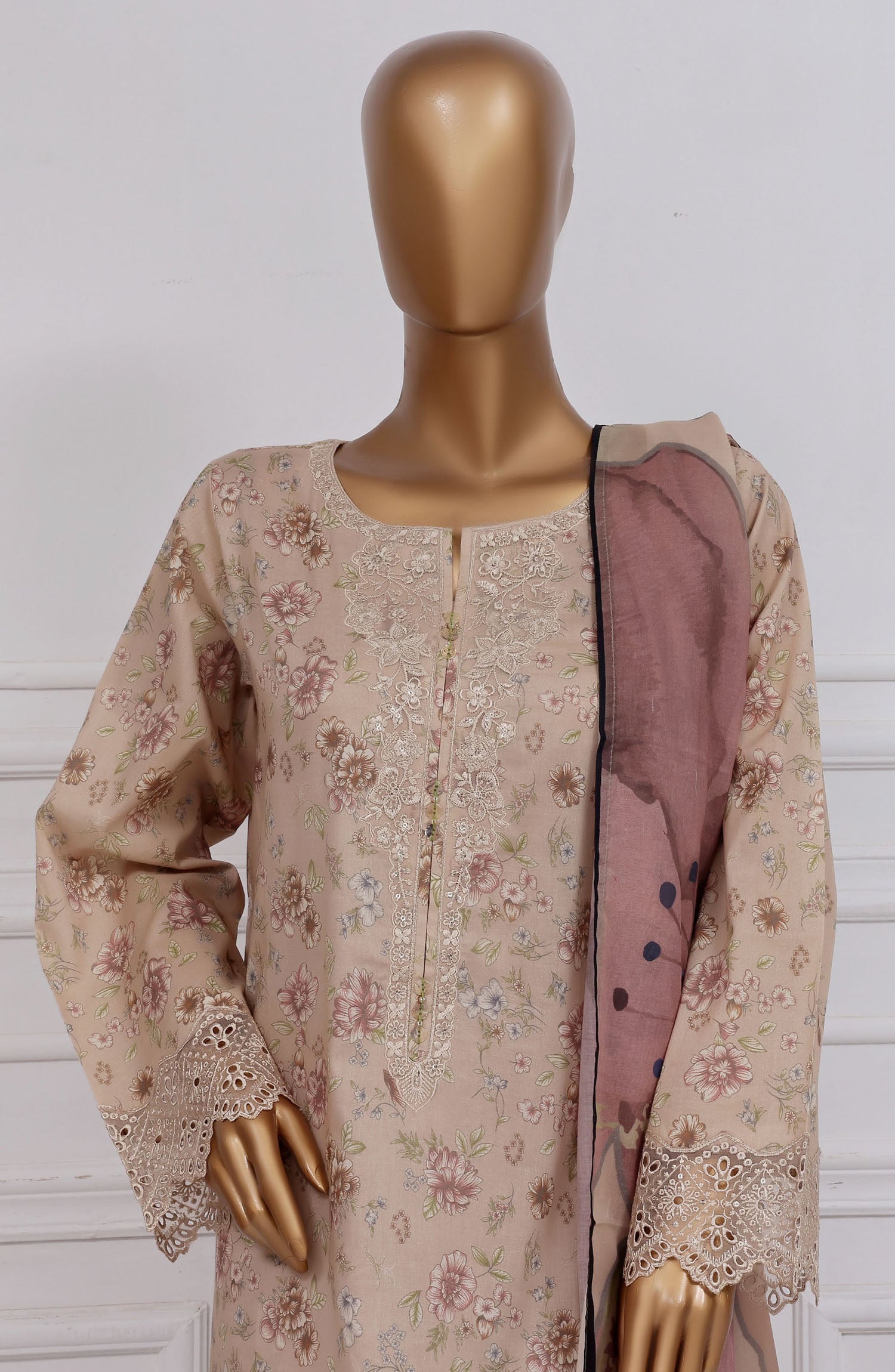 Home Raya by Sadabahar Embroidered Lawn Stitched 3 Piece Suit - D-03 - SBD25RFCV2 - Beige - Festive Collection