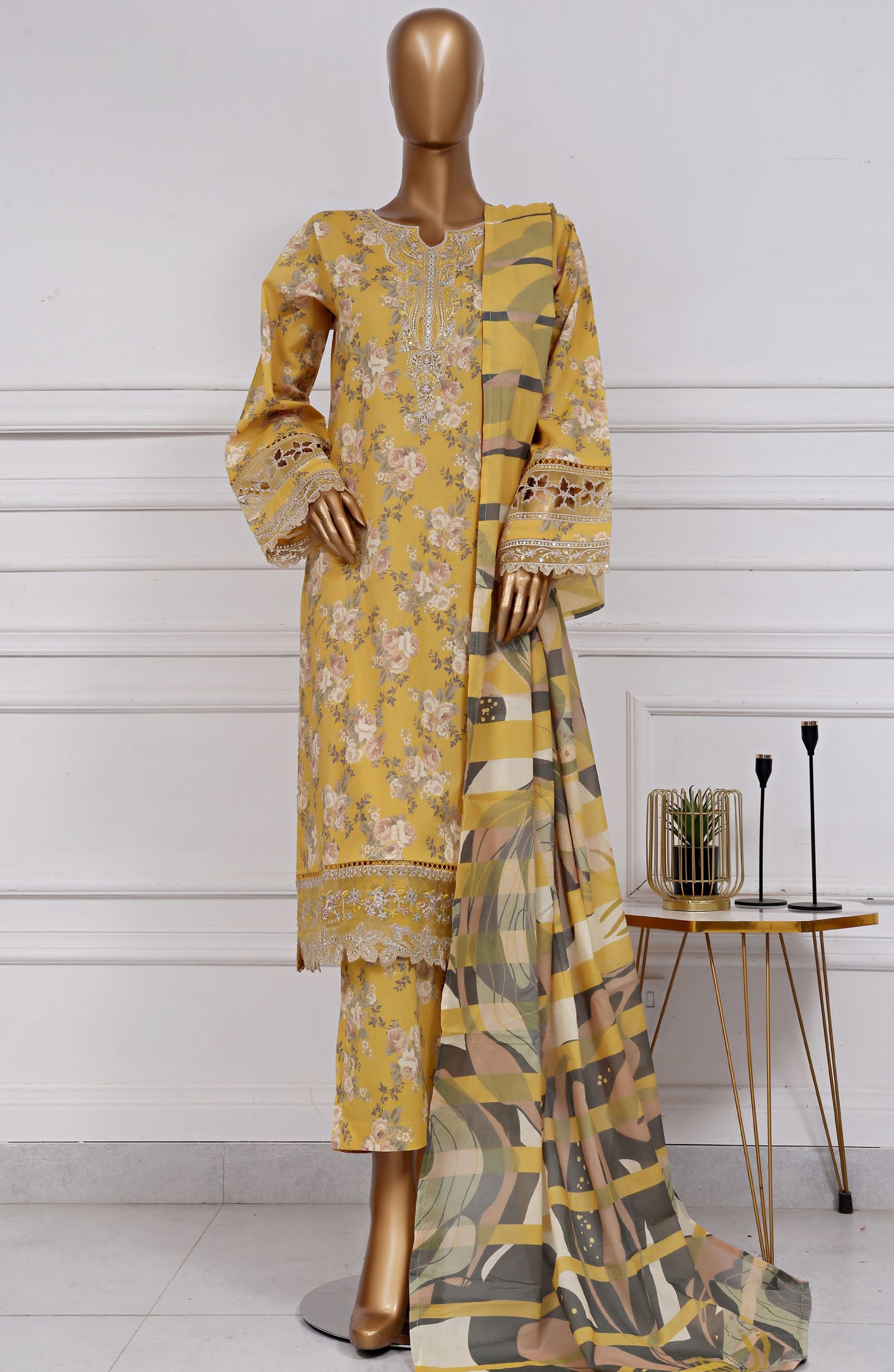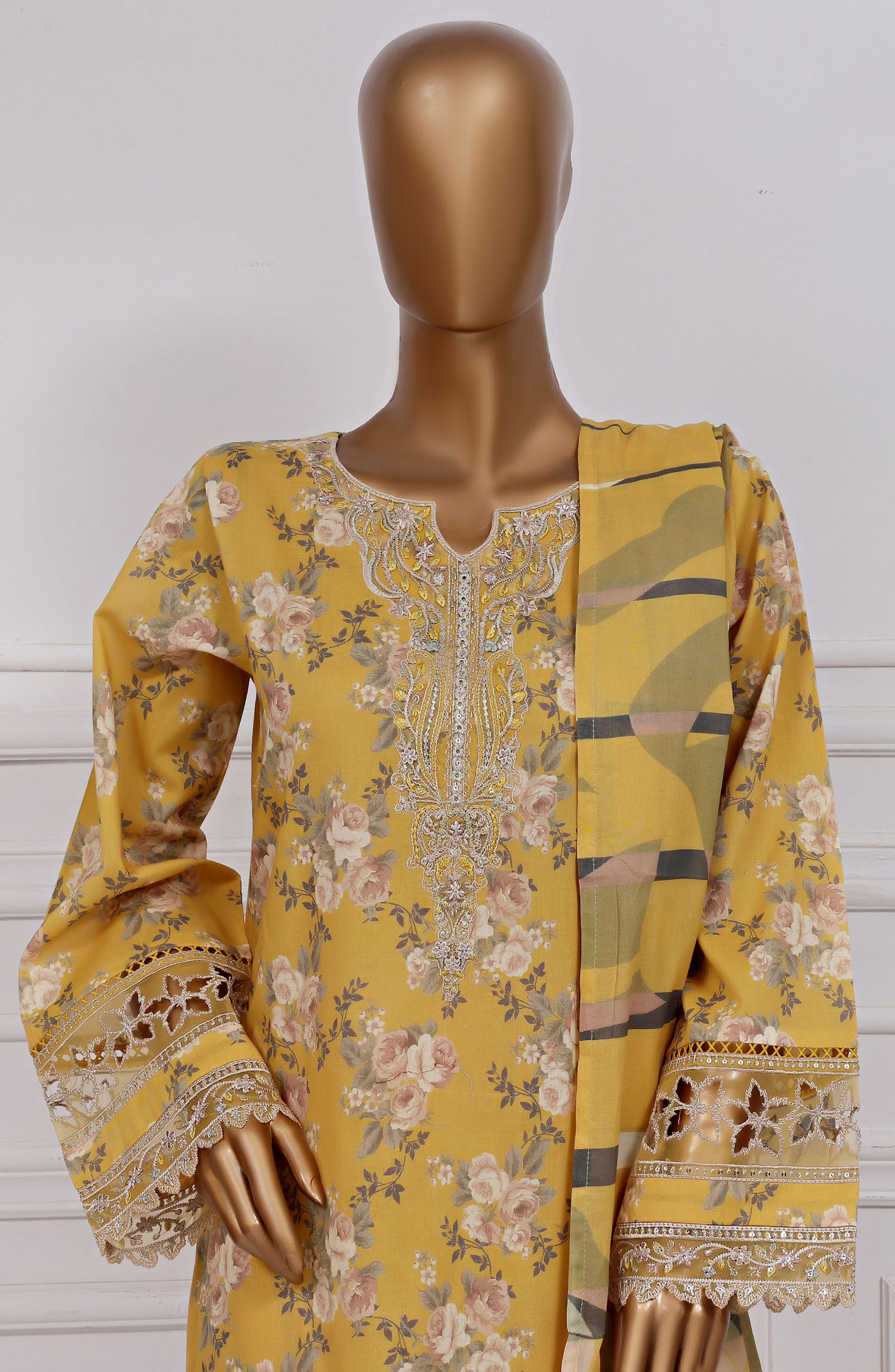 Home Raya by Sadabahar Embroidered Lawn Stitched 3 Piece Suit - D-04 - SBD25RFCV2 - Yellow - Festive Collection