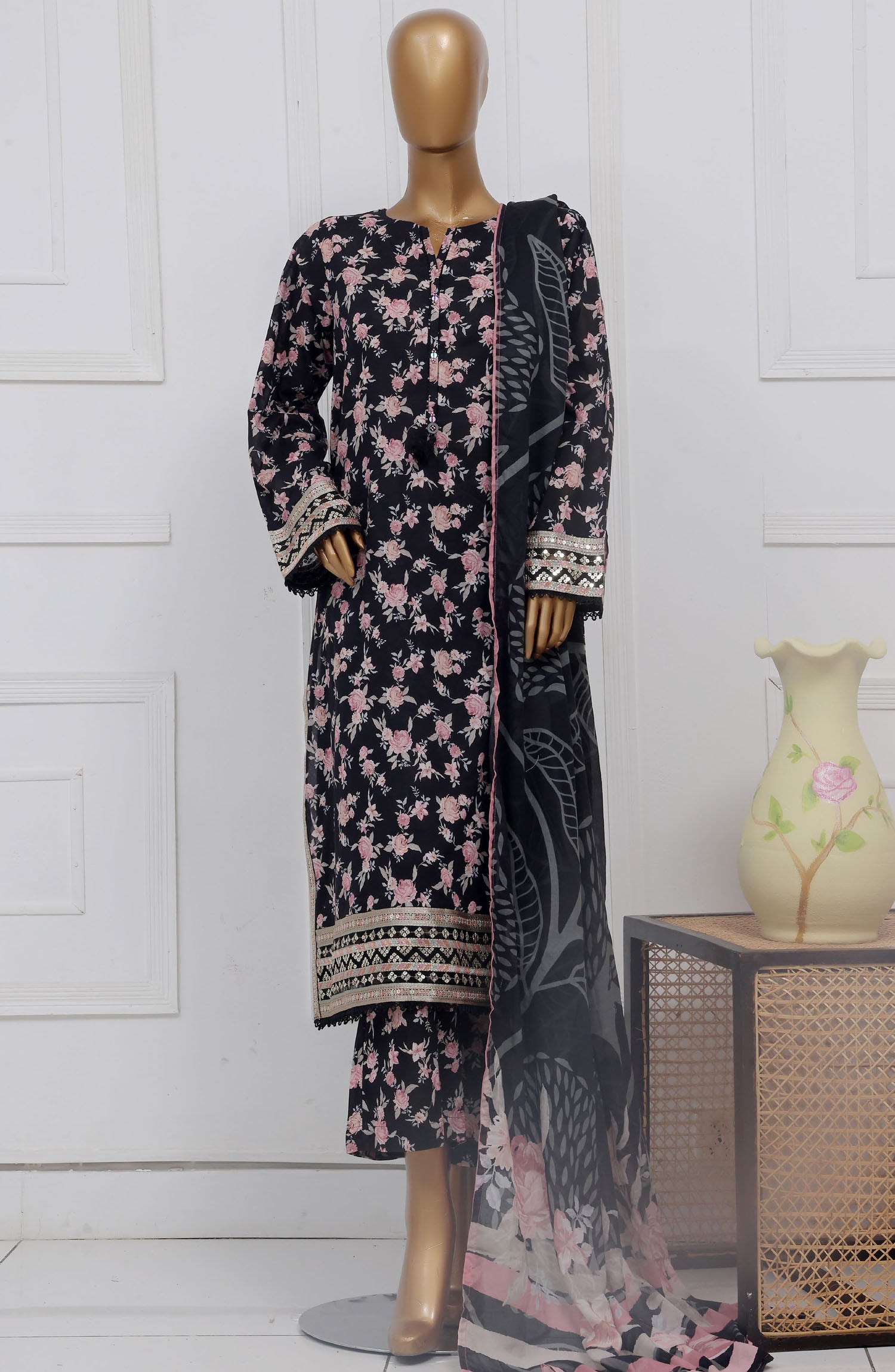 Home Raya by Sadabahar Embroidered Lawn Stitched 3 Piece Suit - D-05 - SBD25RFCV2 - Black - Festive Collection