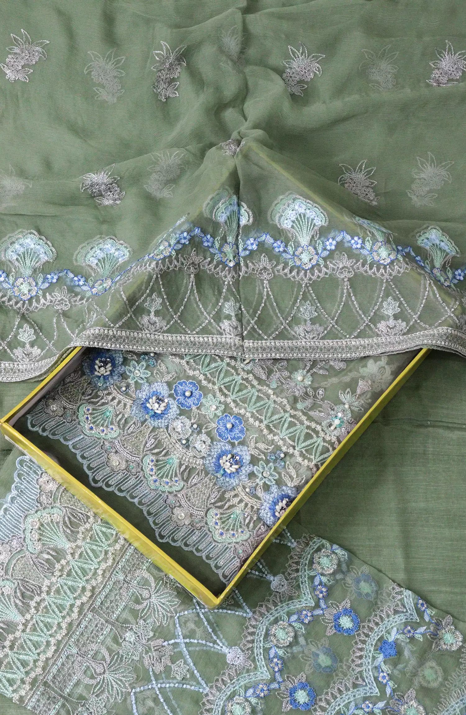 Front Chiffon Embroidered with Hand made and Accessory