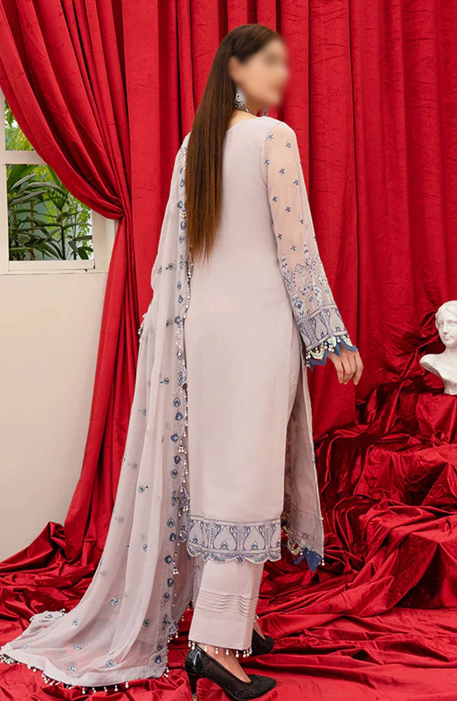 Front : Chiffon Embroidered with Accessories