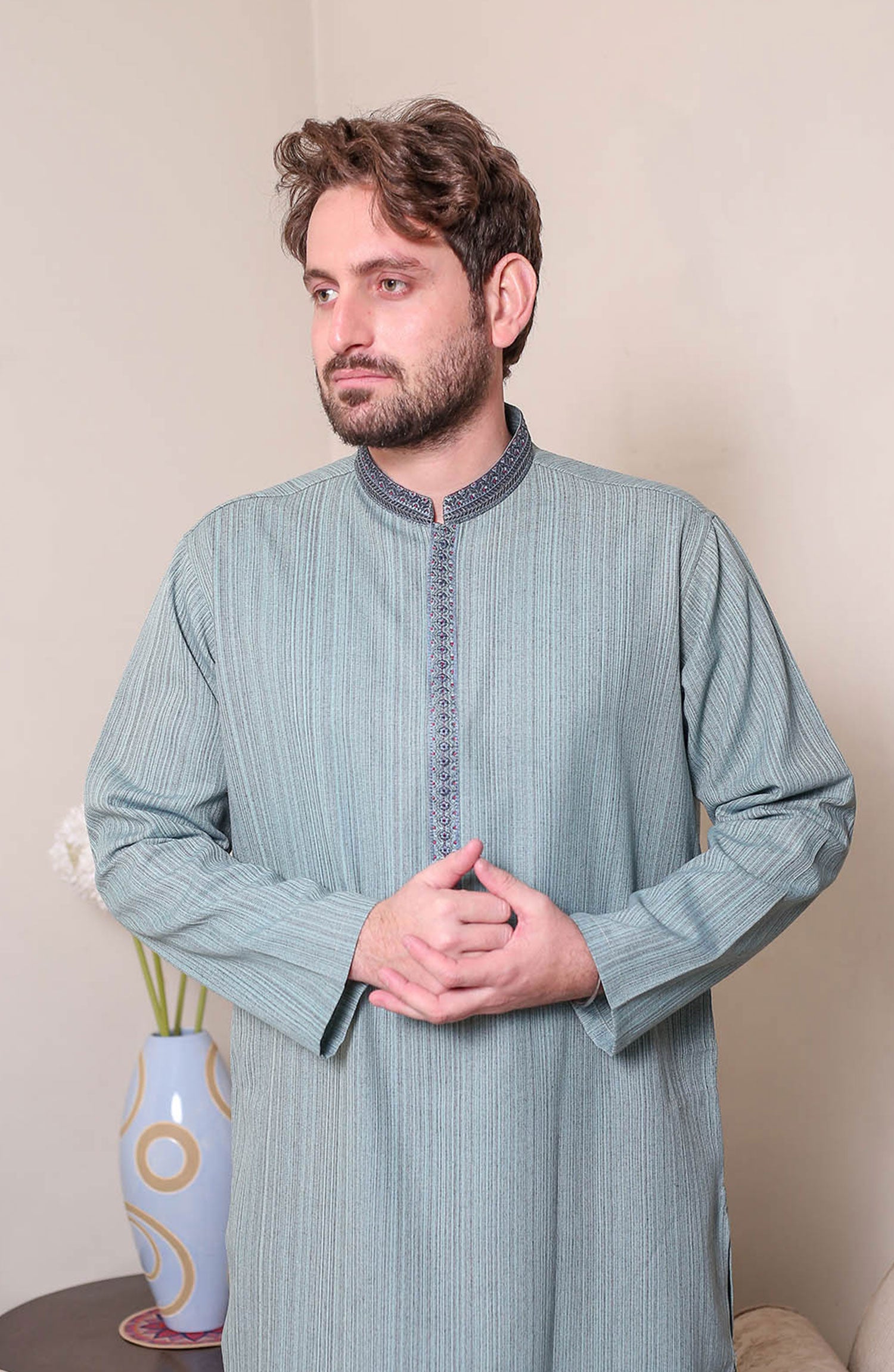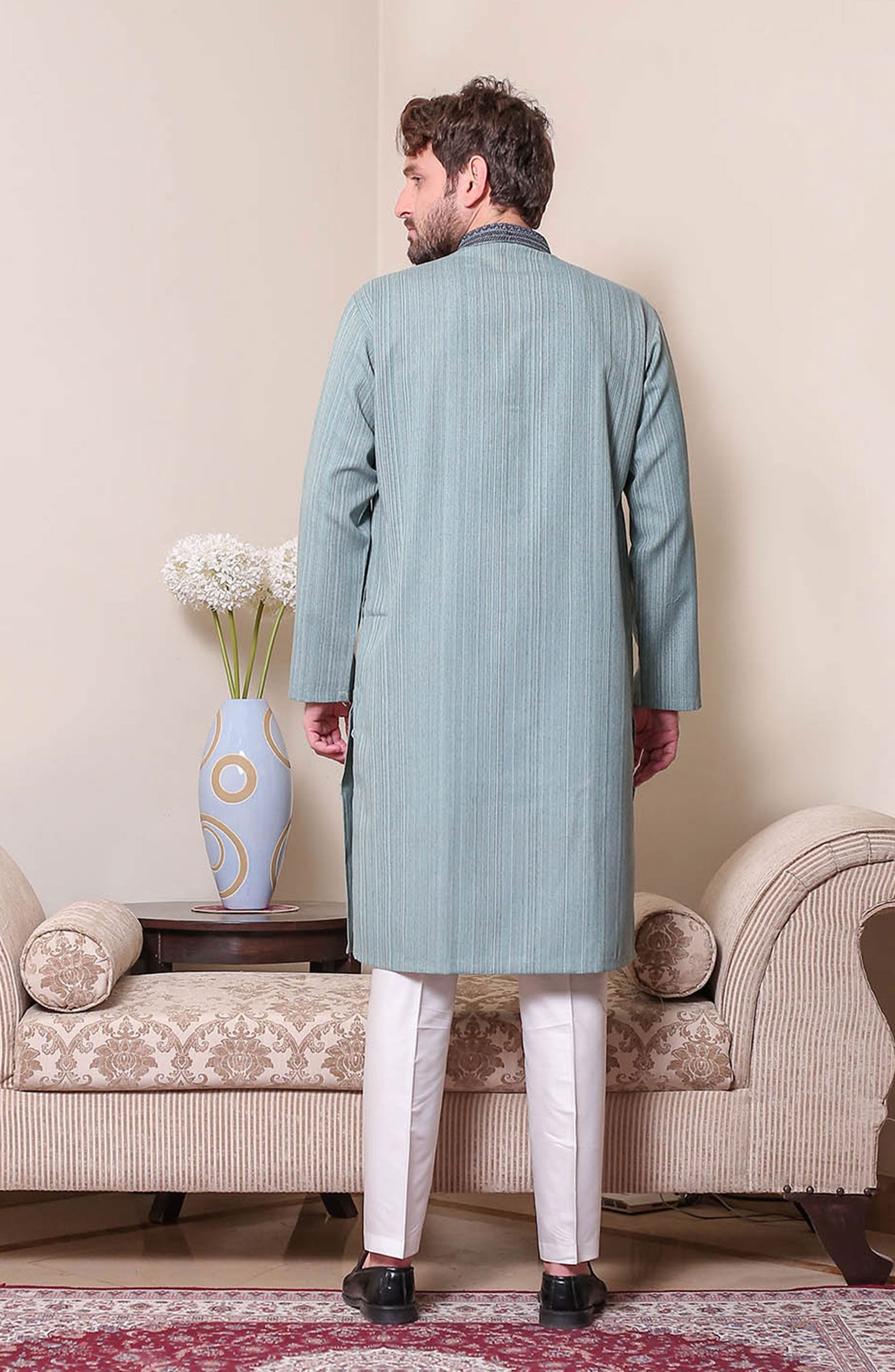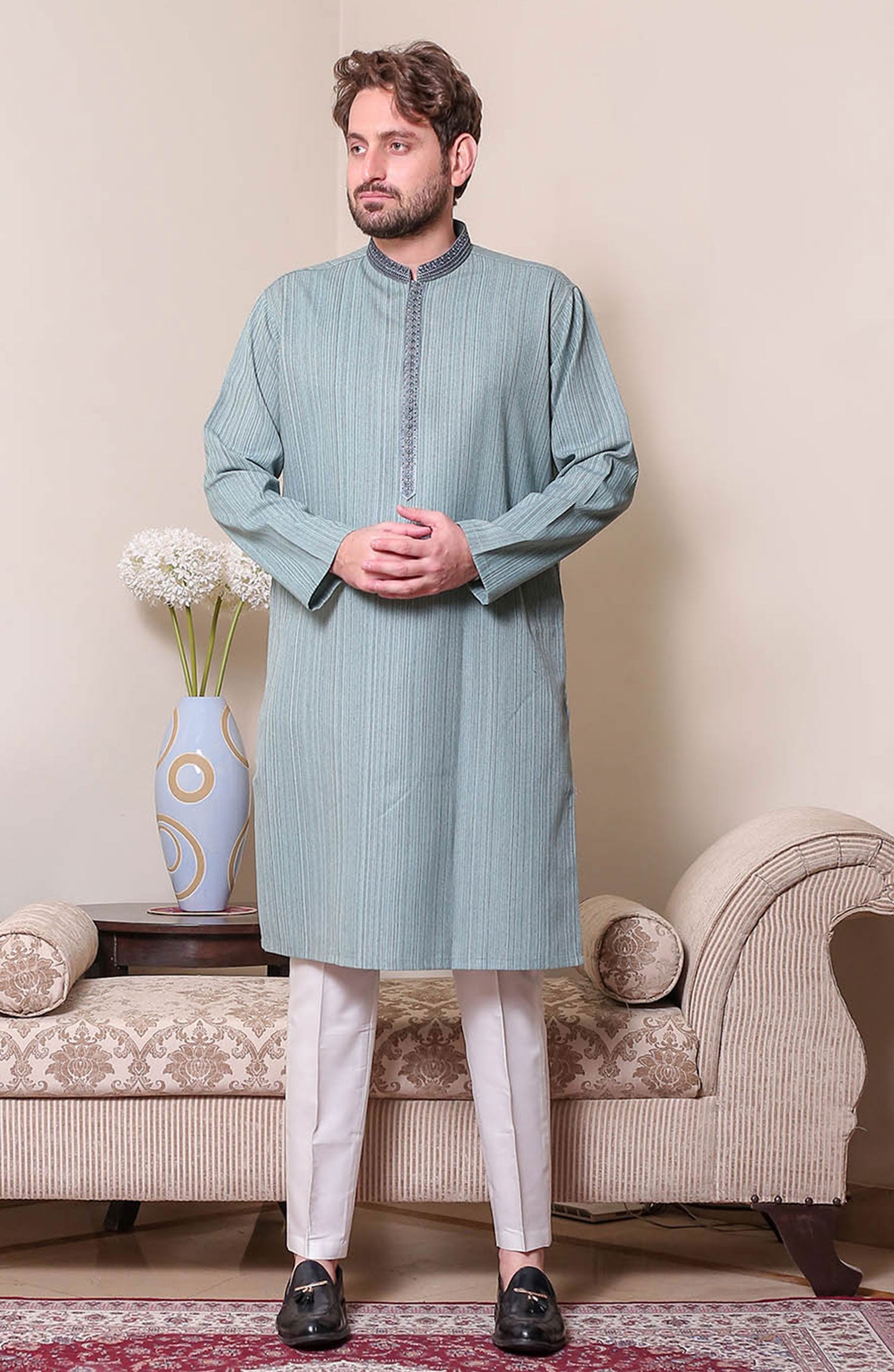 Formal Style Kurta for Men , Easy Iron , Formal Yarn Dyed Base Fabric with Embriodrey on Collar and Front Placket , Special For Festive Use