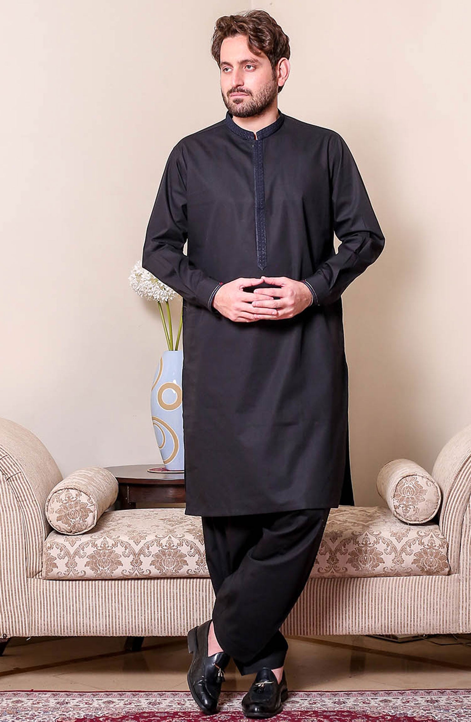 Formal Style Kameez Shalwar Suit for Men , Easy Iron , Formal Satin Cotton Fabric with Embriodrey on Collar and Front Placket , Special For Formal and Festive Use