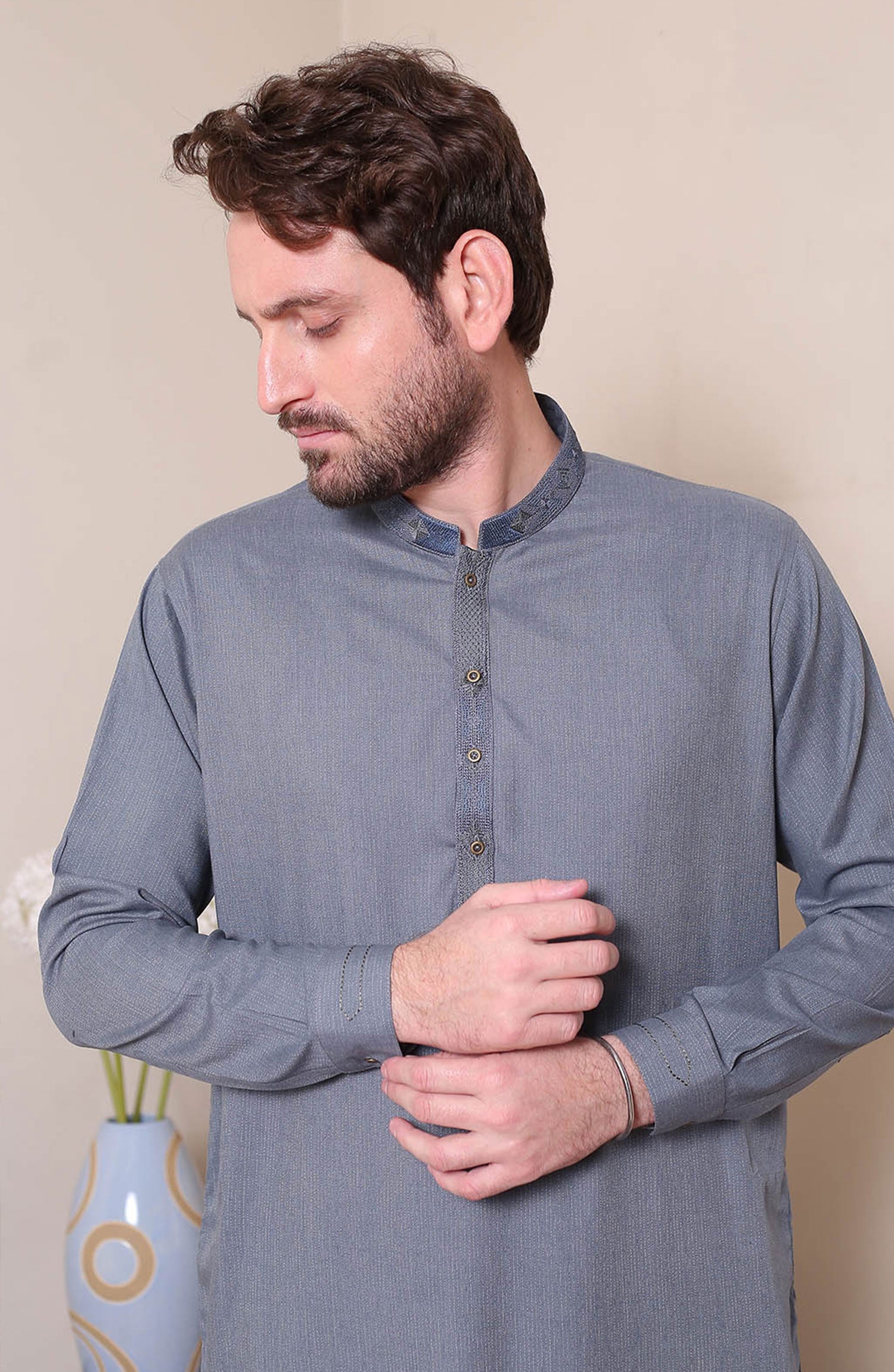 Formal Style Kameez Shalwar Suit for Men , Easy Iron , Formal Fabric with Embriodrey on Collar and Front Placket , Special For Formal and Festive Use