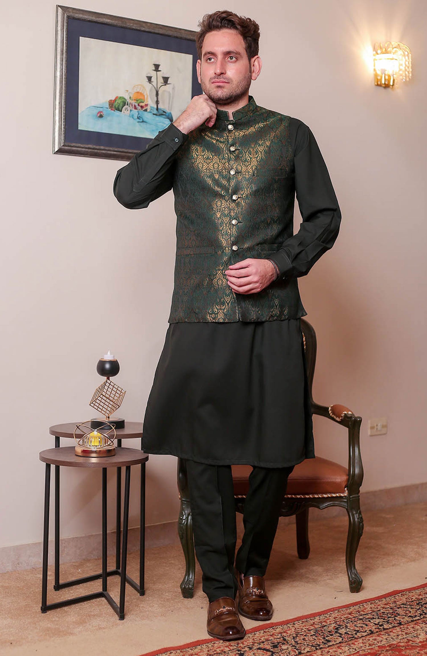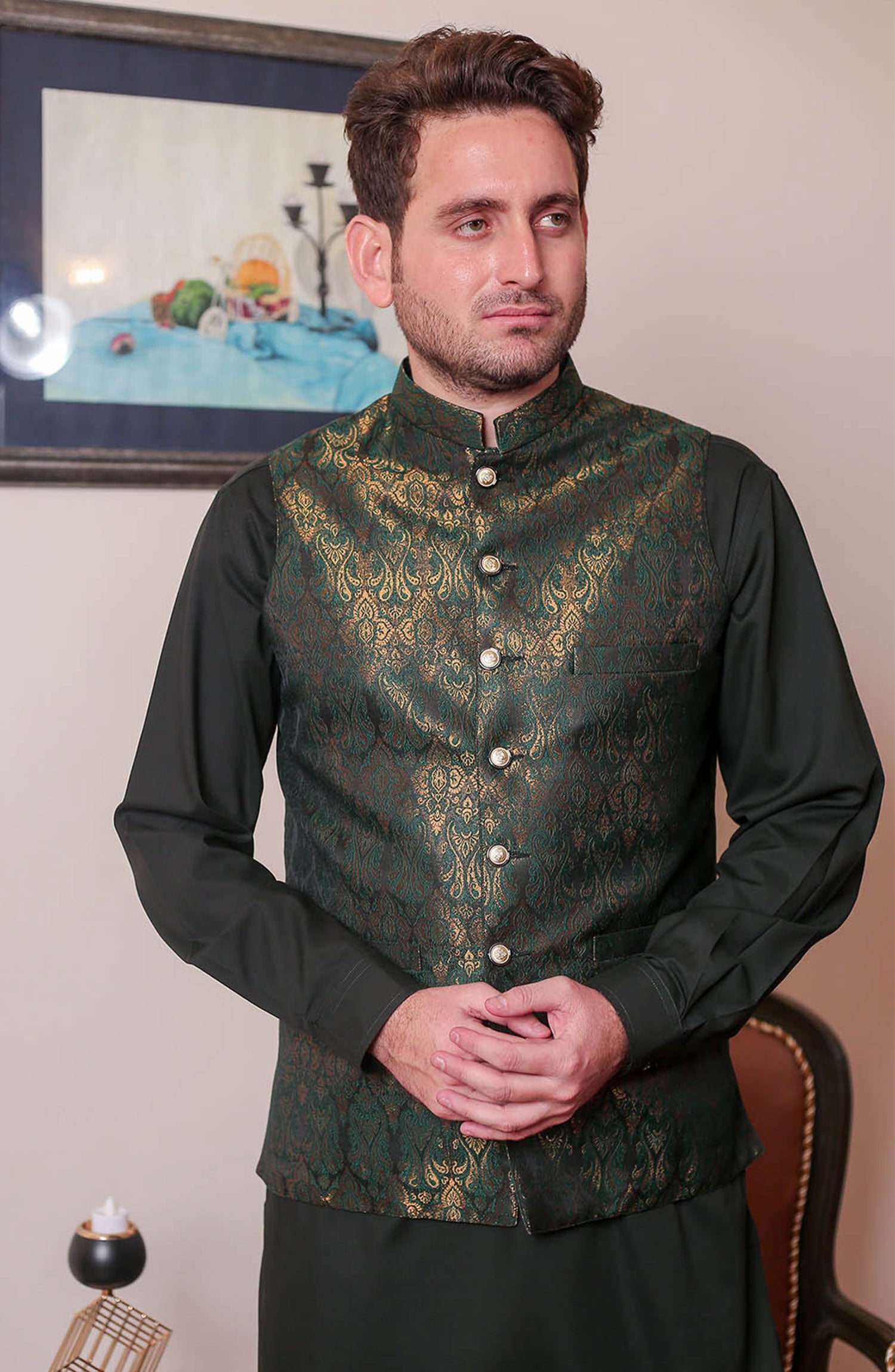 Real Image Mens Waist Coat and Prince Coat Collection has been styled in the image for photography and illustrative purposes.