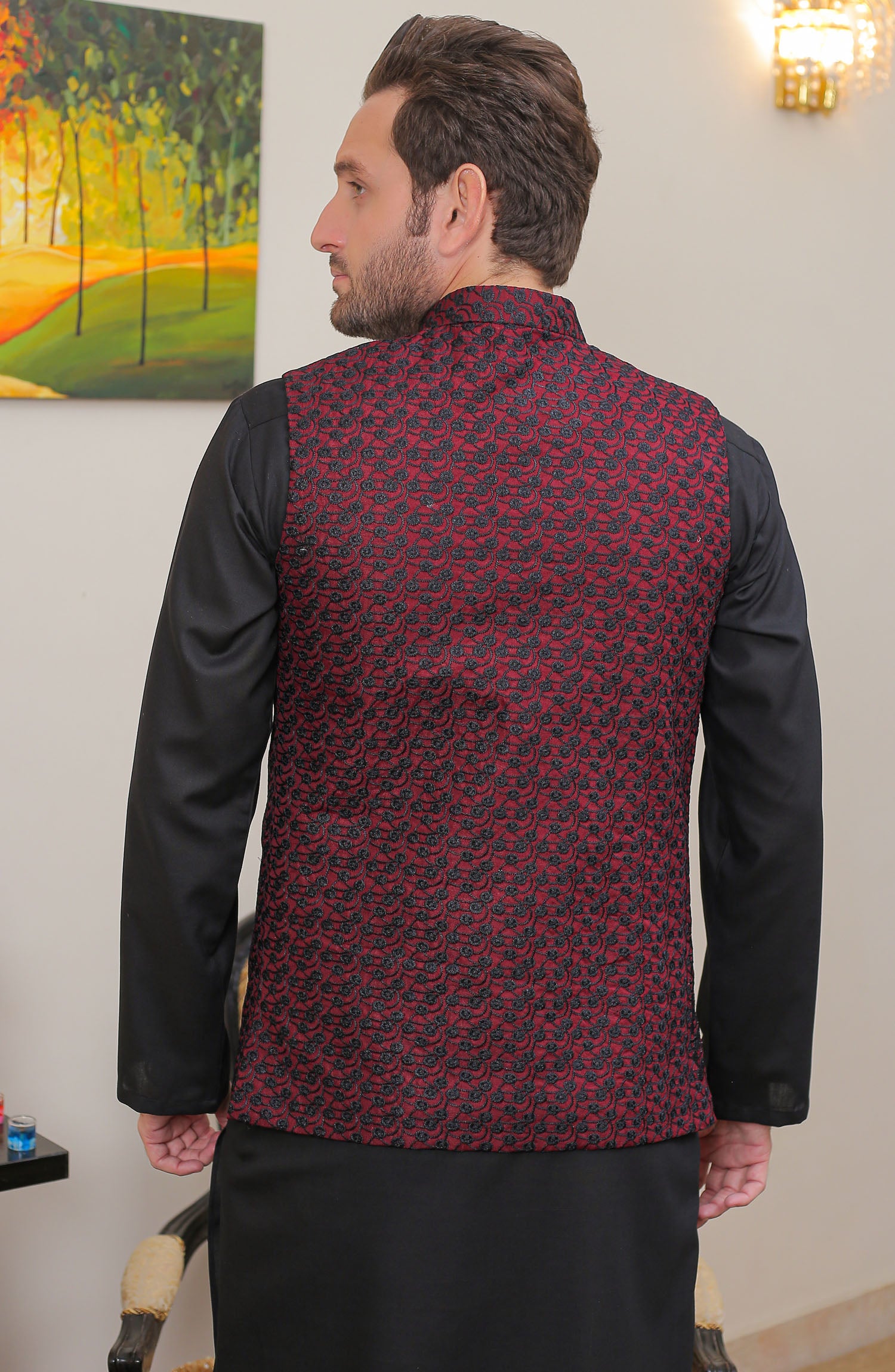 Formal Style Waist Coat for Men , Raw Silk Fabric , With Rich Embriodrey Design in Thread Work , Special for Festive And Wedding Wear