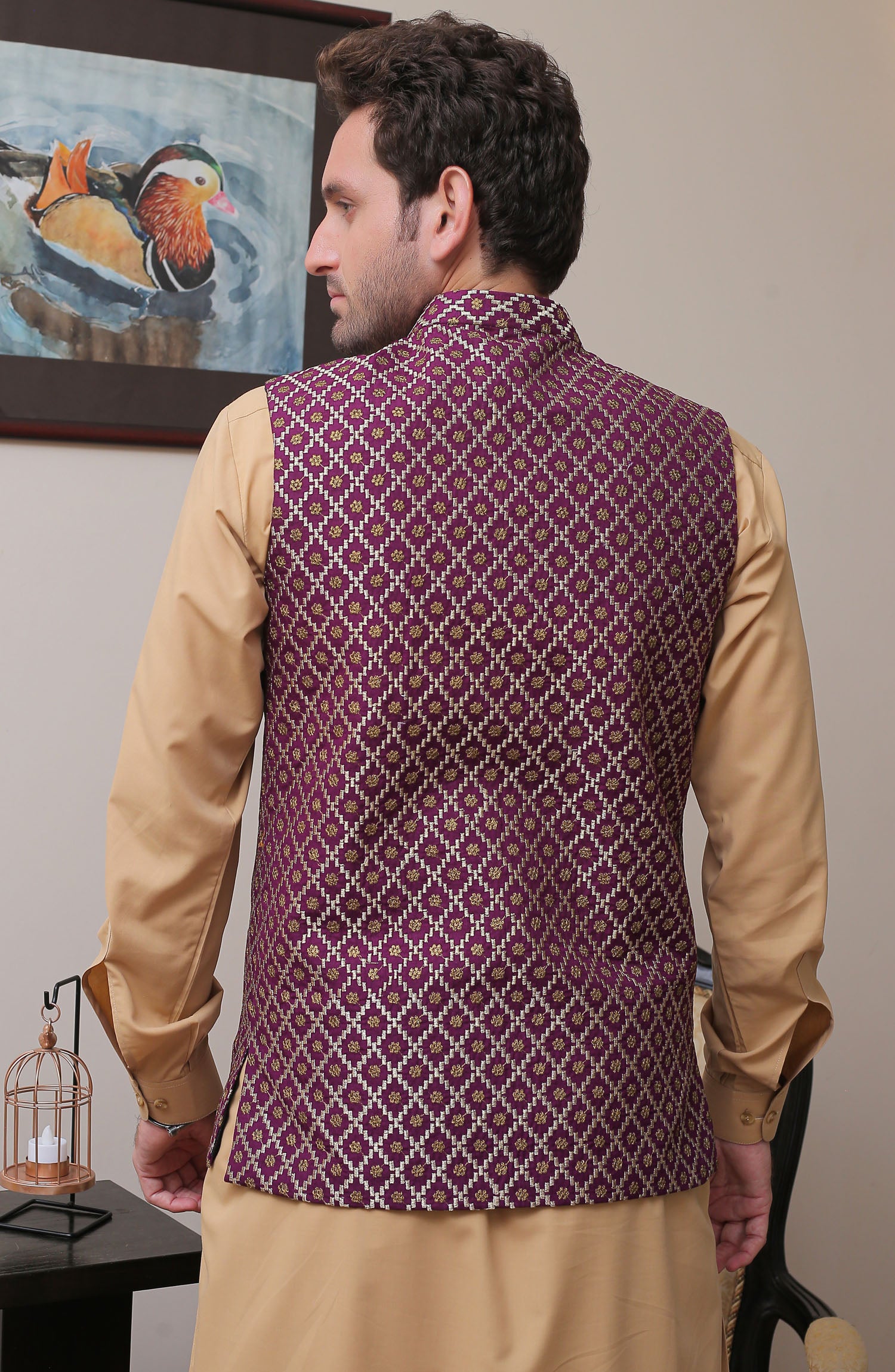 Formal Style Waist Coat for Men , Raw Silk Fabric , With Rich Embriodrey Design in Zari Work , Special for Festive And Wedding Wear