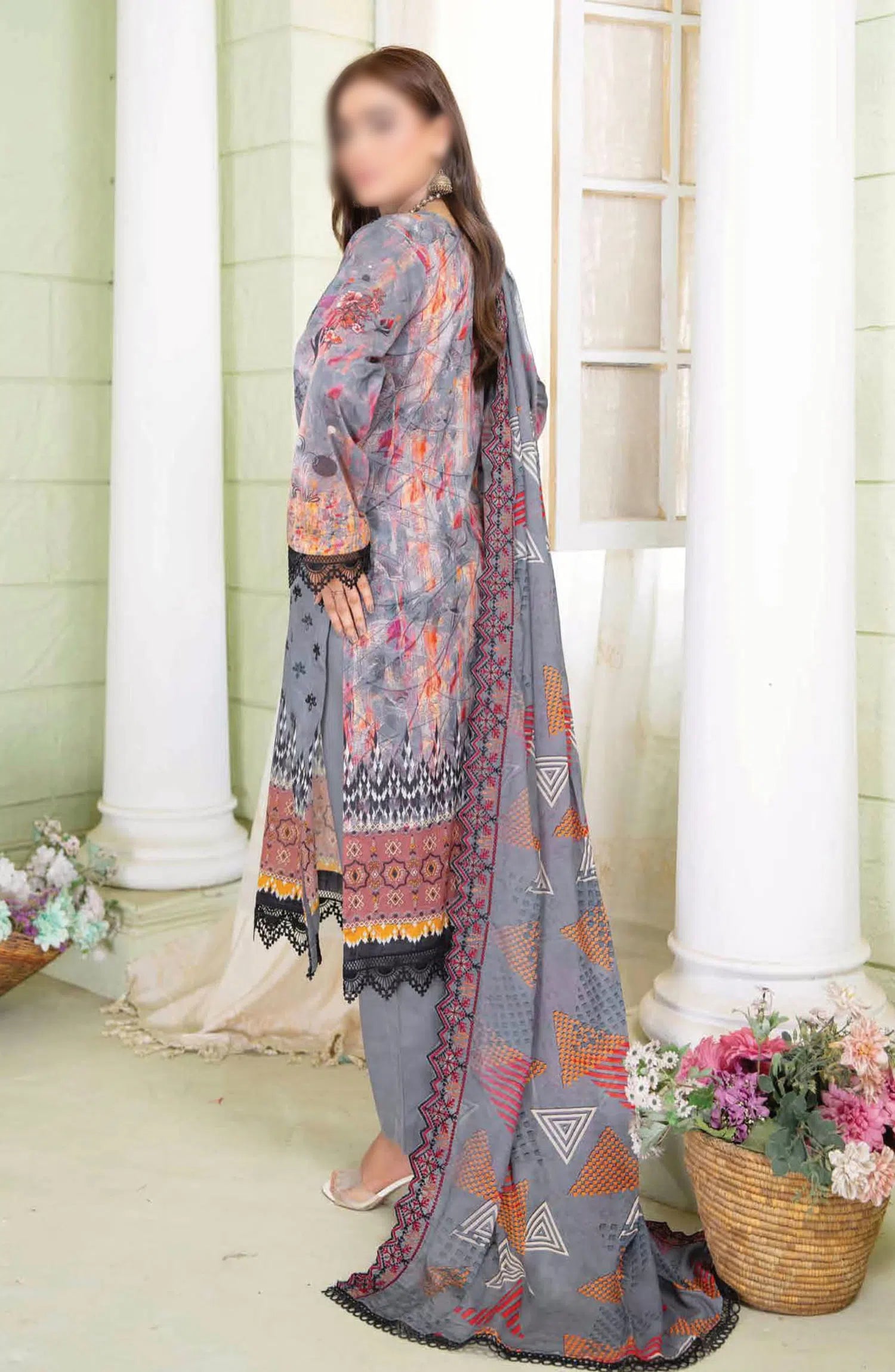 Reet Riwaj Digital Print and Embroidered Collection By Riaz Arts has been styled in the image for photography and illustrative purposes.