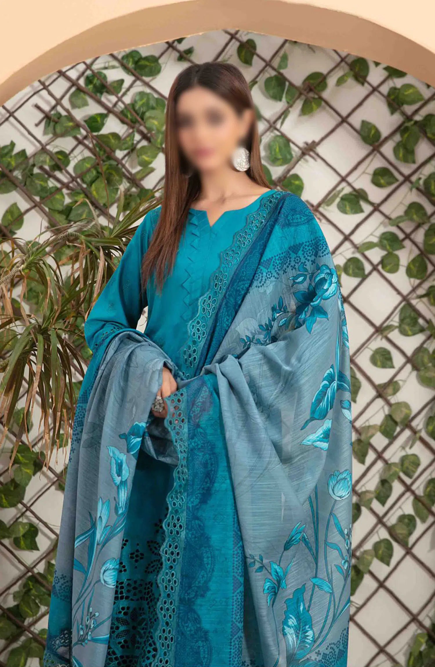 Afsana by Peridot Embroidered Khaddar Unstitched 3 Piece Suit - 488-B - PT25AF - Blue - Winter Collection