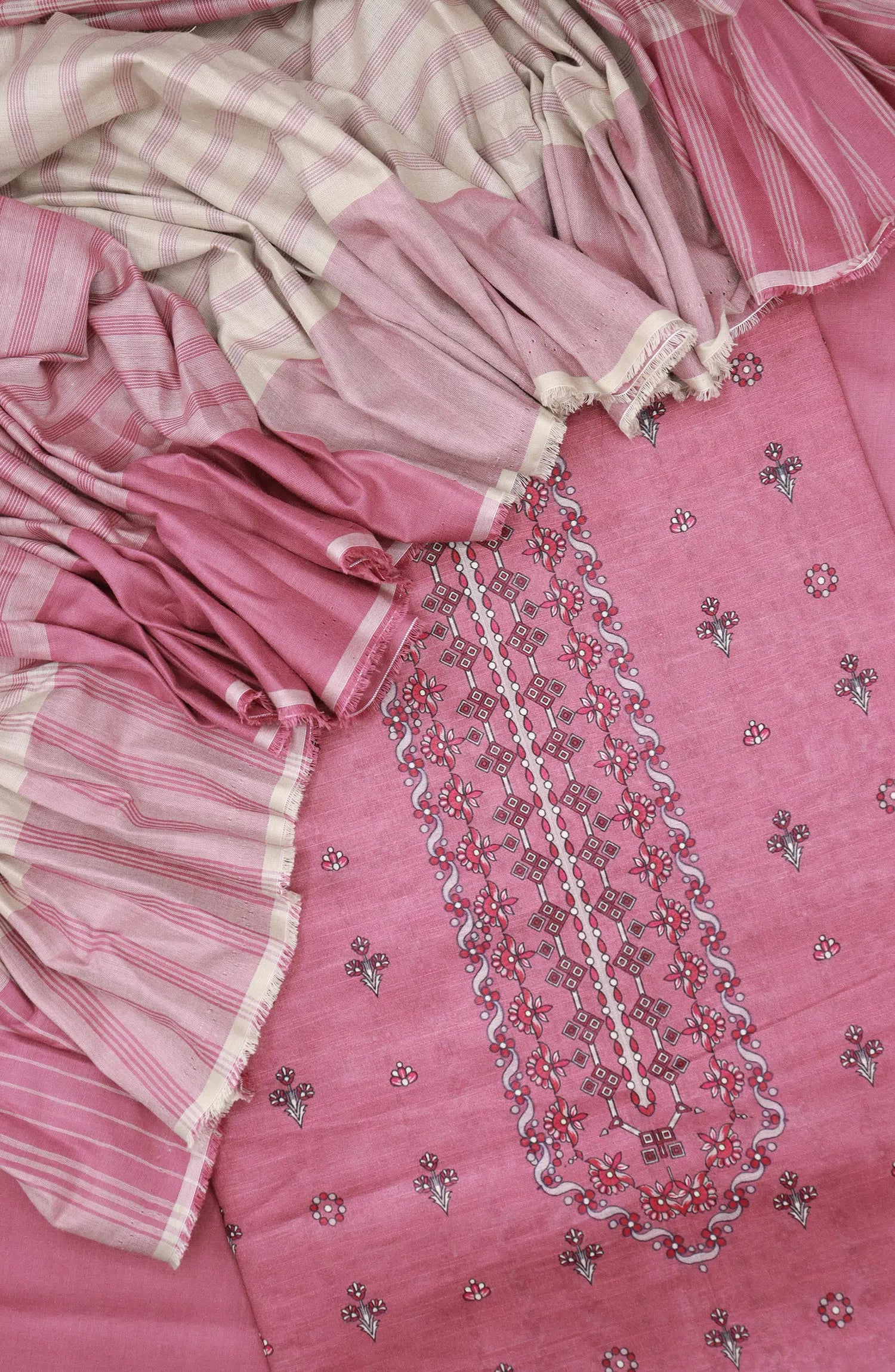 Unstiched Printed Shirt with Rangoli Check Dupatta