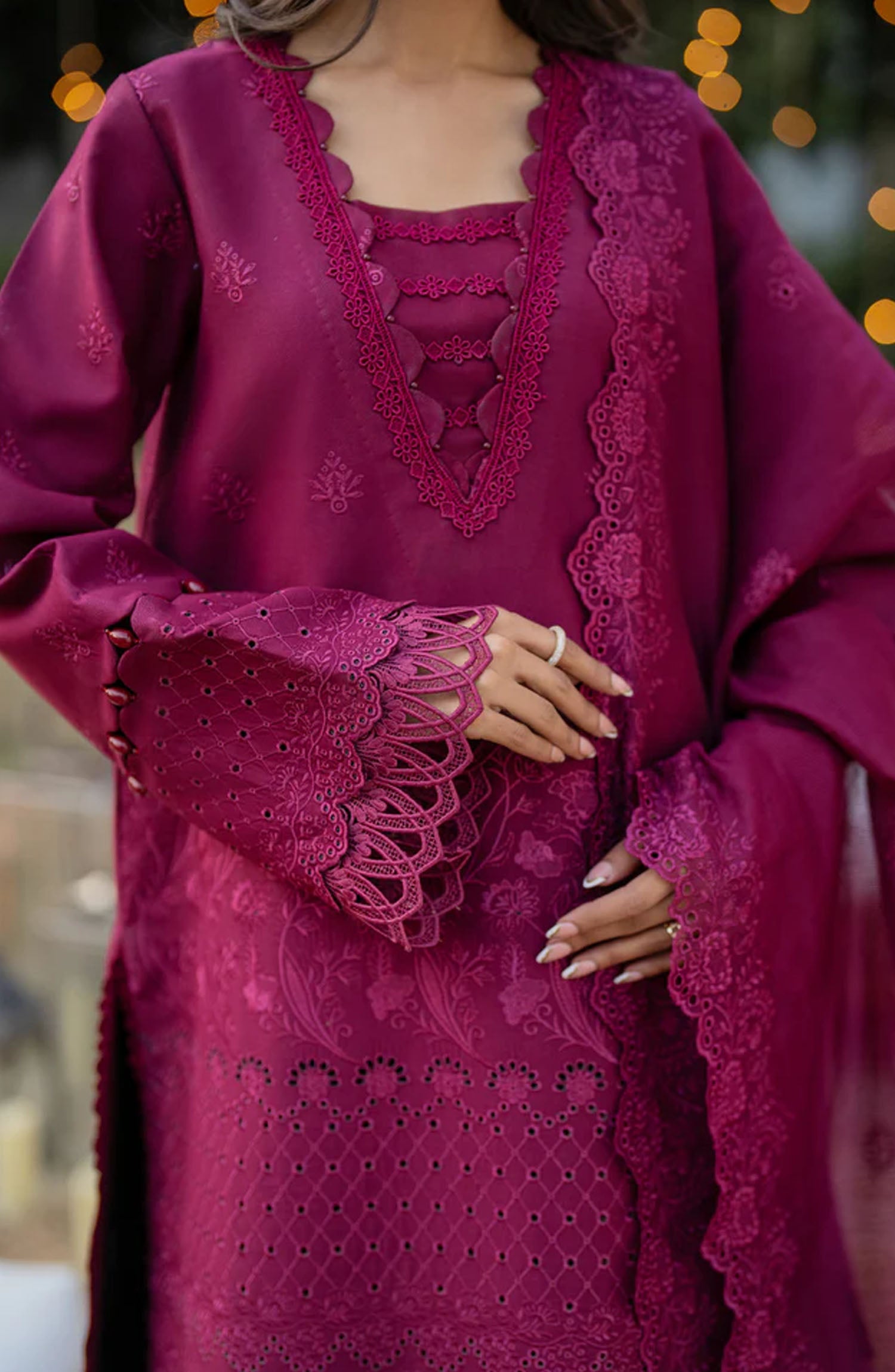 Dyed embroidered cotton net dupatta 2.5 mtr