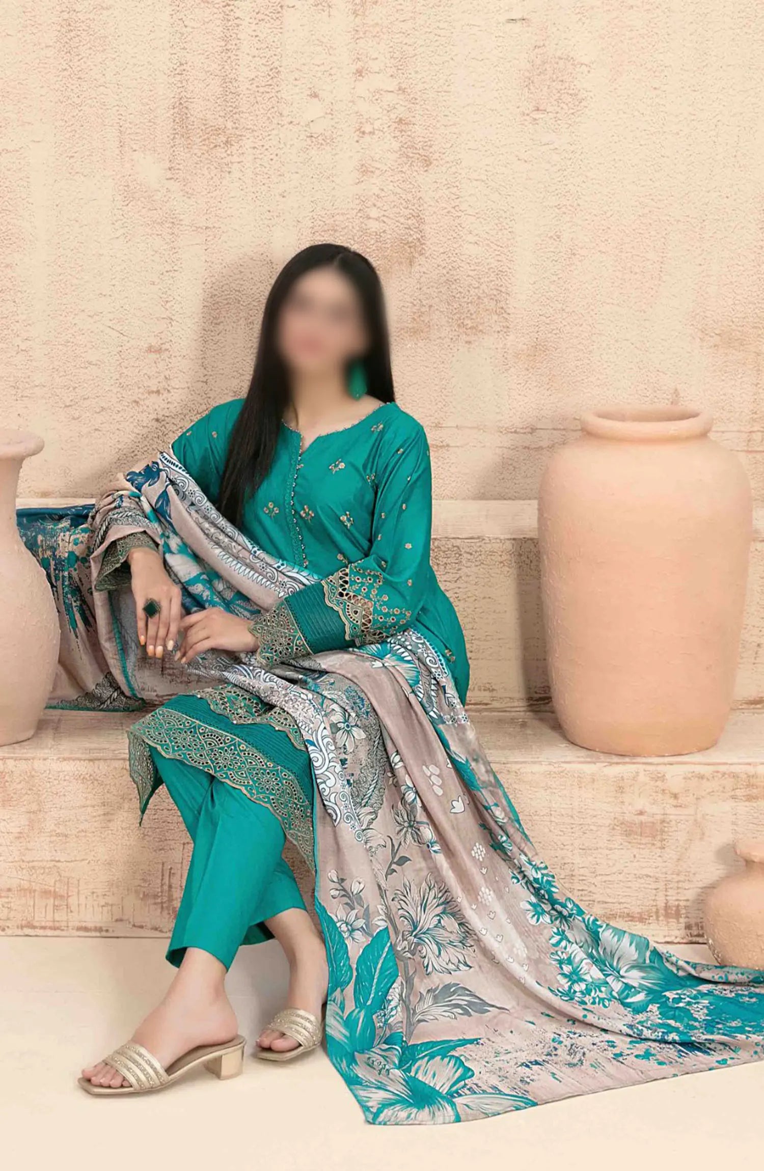 Modest Embroidered Khaddar Stitched 3 Piece Suit - 10040-Pnk - MOD25WNT - Pink - Winter Collection