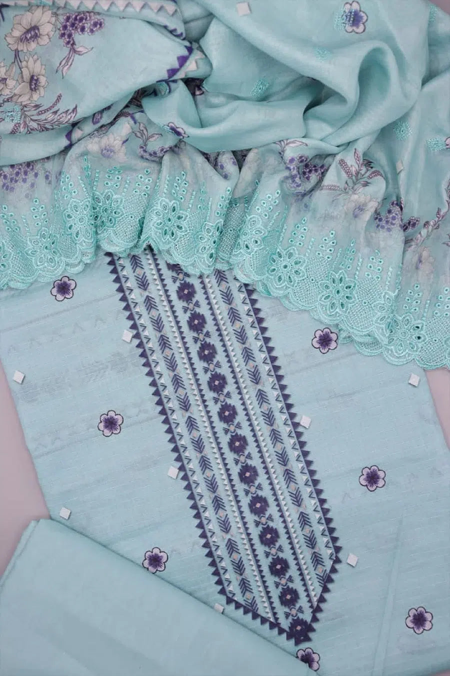 Elaf Luxury Embroidered Karandi Unstitched 3 Piece Suit - EWK-7A MINTFROST - EL25WNL - Blue - Winter Collection