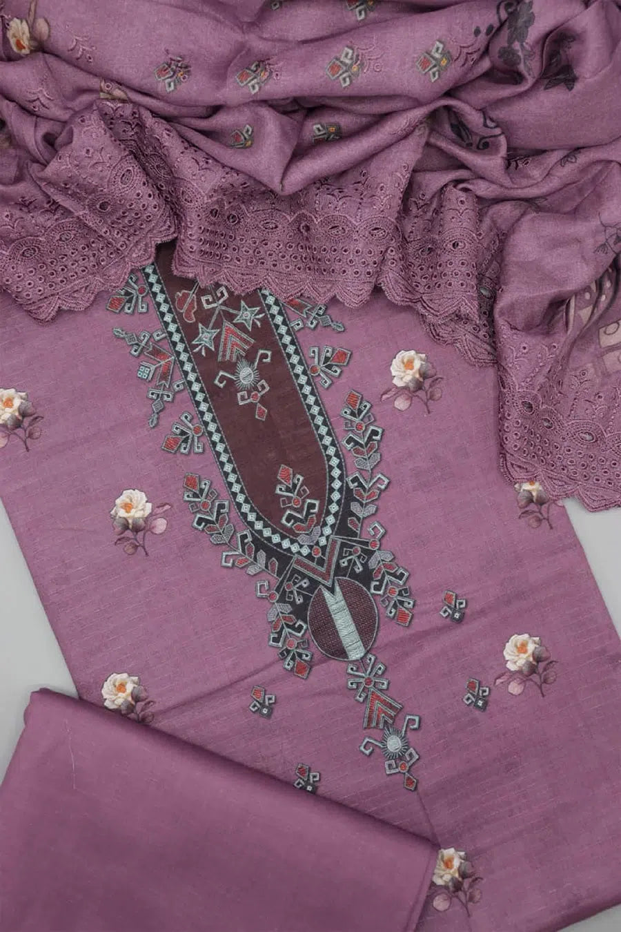 Elaf Luxury Embroidered Karandi Unstitched 3 Piece Suit - EWK-7B HUSHPINK - EL25WNL - Pink - Winter Collection