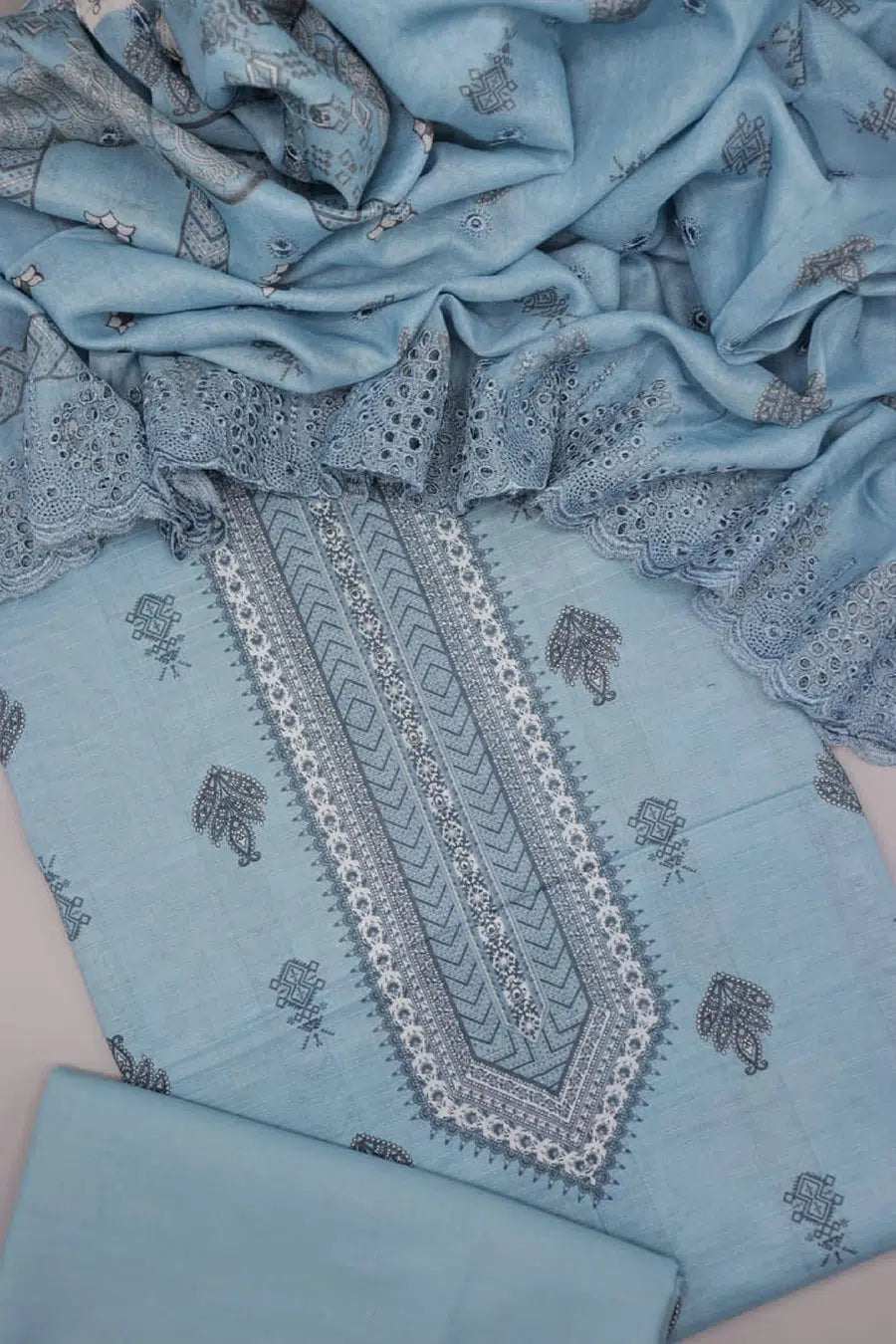 Elaf Luxury Embroidered Karandi Unstitched 3 Piece Suit - EWK-7A MINTFROST - EL25WNL - Blue - Winter Collection