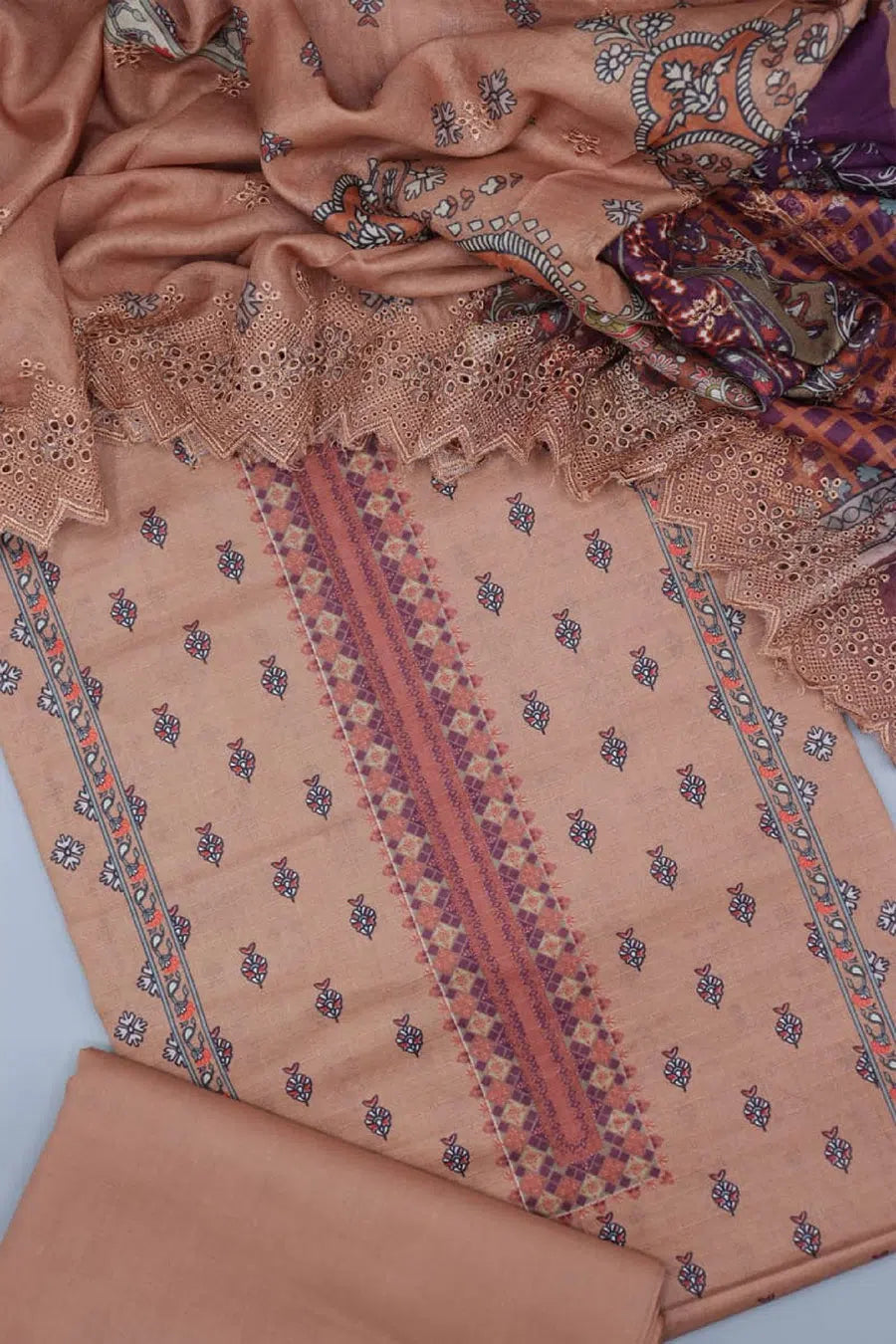 Elaf Luxury Embroidered Karandi Unstitched 3 Piece Suit - EWK-7B HUSHPINK - EL25WNL - Pink - Winter Collection