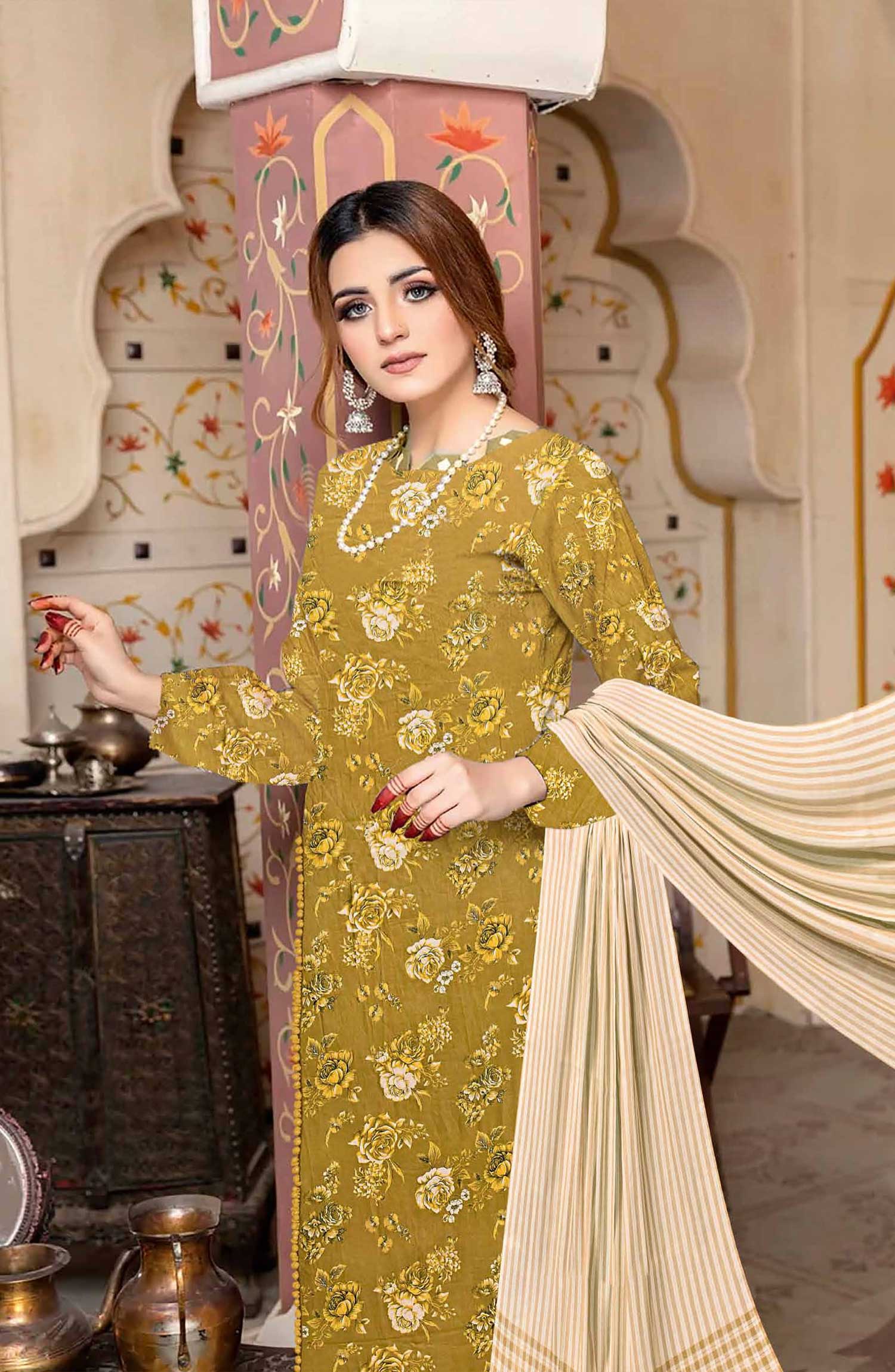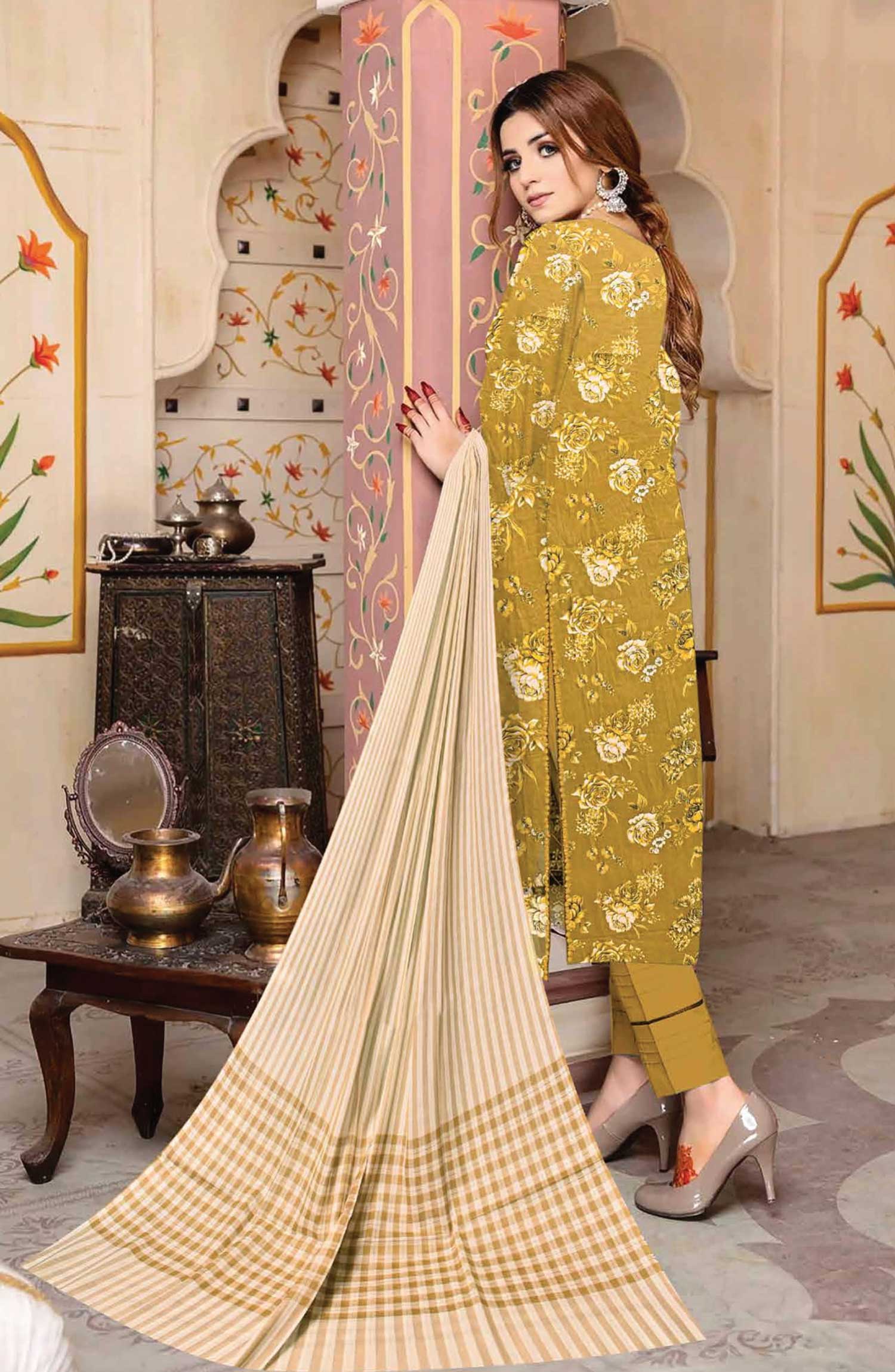 Home Riwaj by Riaz Arts Printed Lawn Unstitched 3 Piece - D-01 - RA25RL - Mustard - Summer Collection
