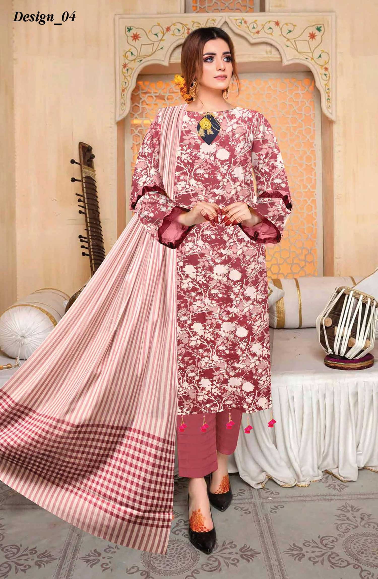 The standard style comes as a long-sleeved kameez with dupatta and trouser/shawlar.
