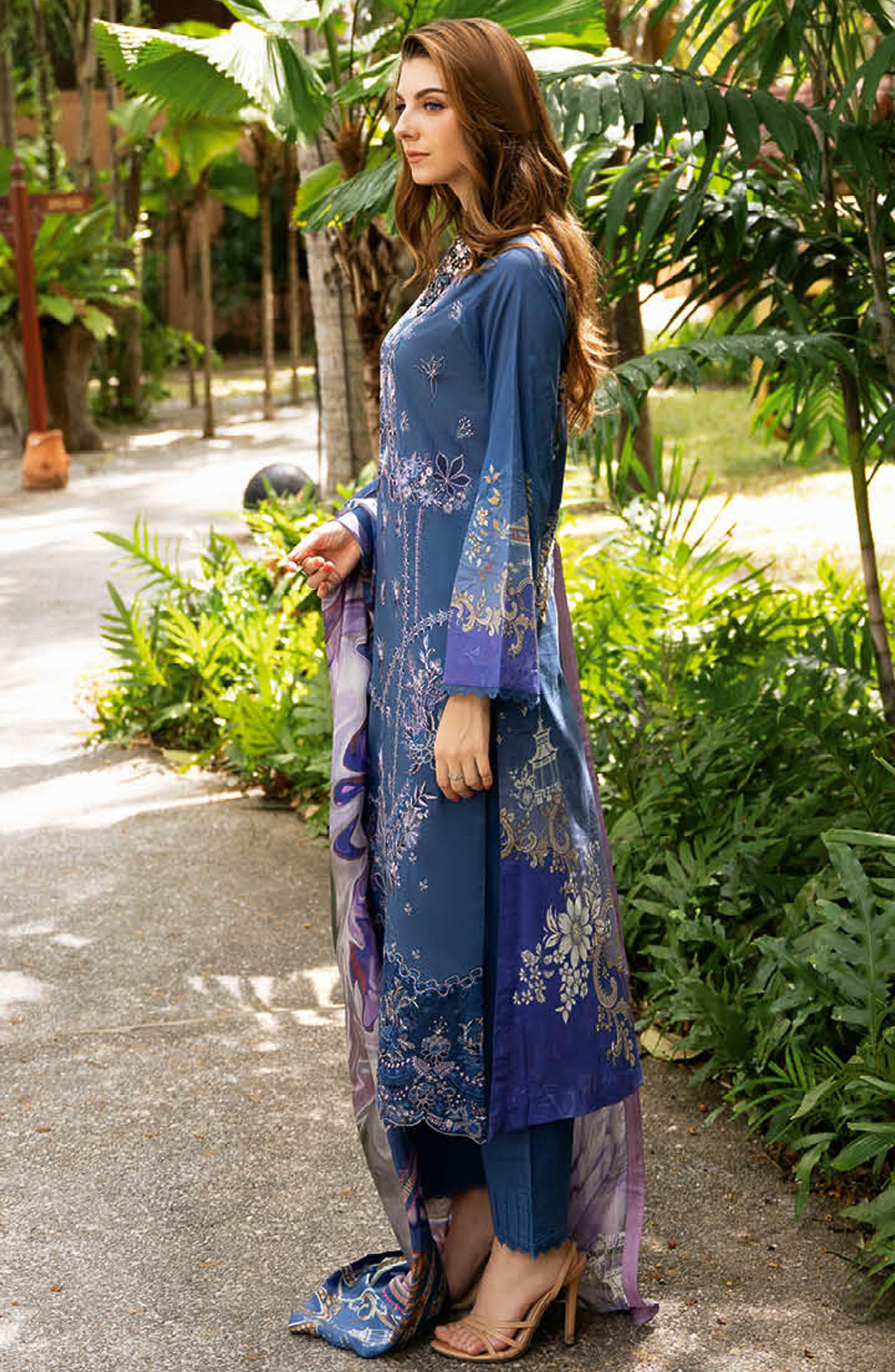 Riwayat by Ramsha Embroidered Lawn Unstitched 3 Piece Suit - Y-1110 - R25RLV11 - Blue - Summer Collection