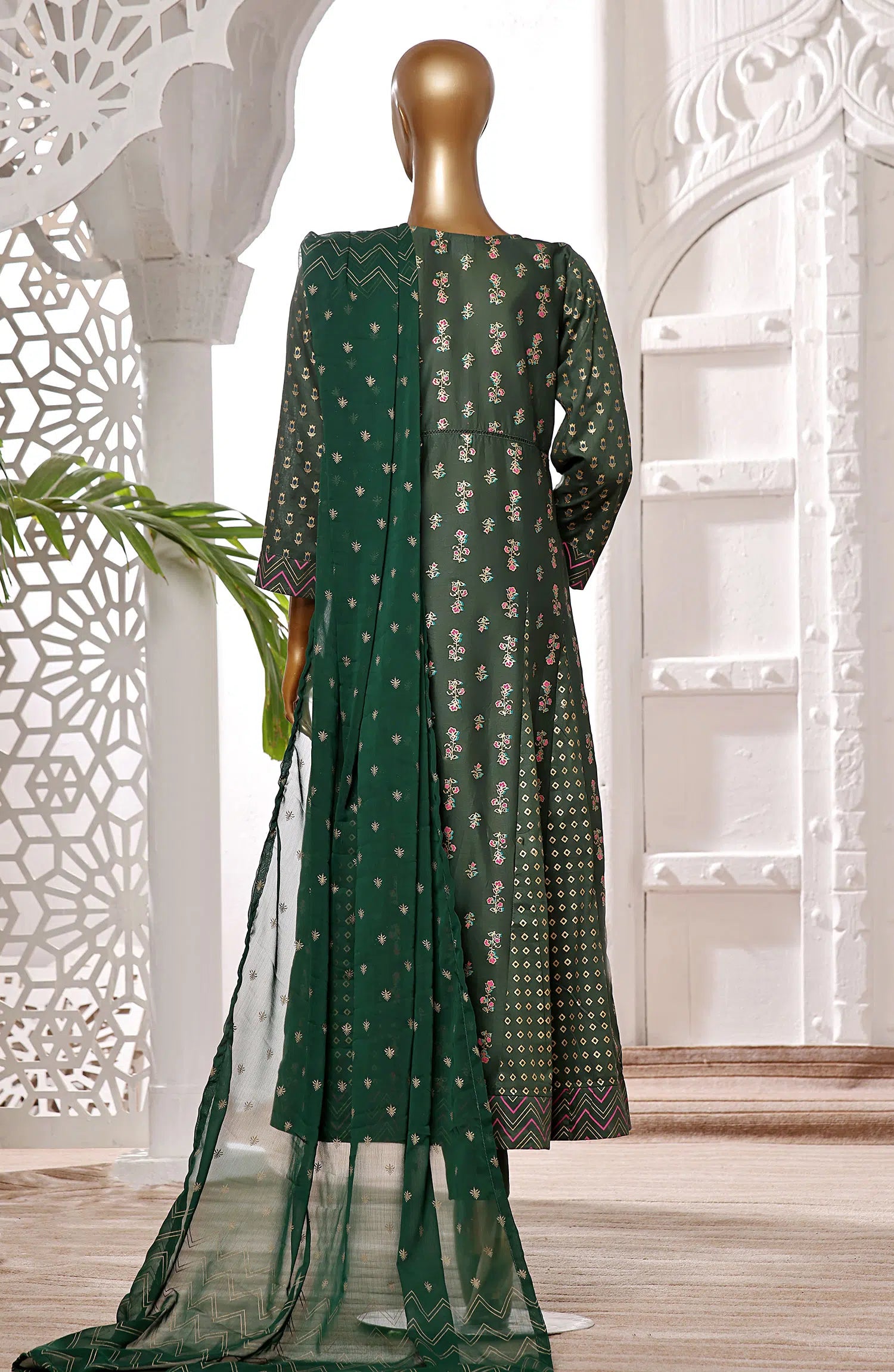 The standard style comes as a long-sleeved kameez with dupatta and trouser/shawlar.
