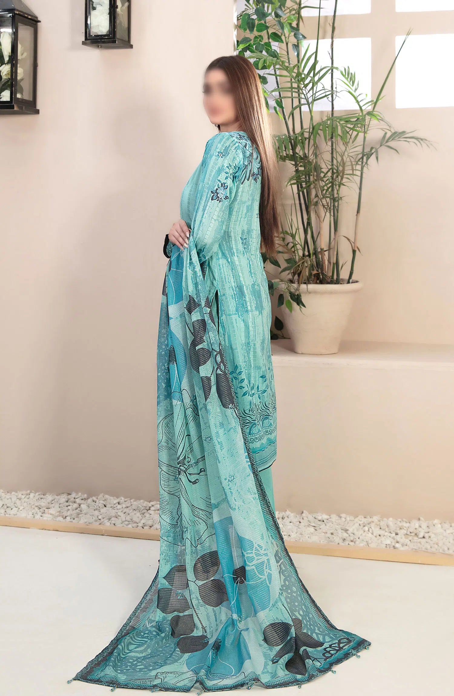 Rua by Casual Lite Embroidered Premium Linen Stitched 3 Piece Suit - D-07 Teal Mirage - CL25RU - Teal - Winter Collection