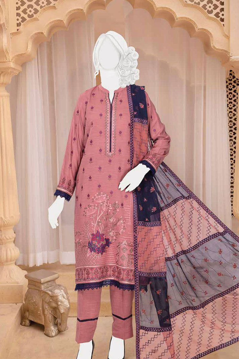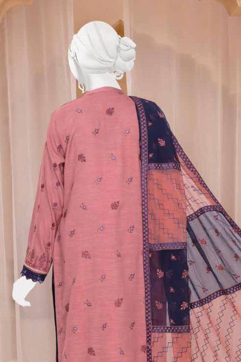 Modest Embroidered Khaddar Stitched 3 Piece Suit - 9940-Pnk - MOD25WNT - Pink - Winter Collection
