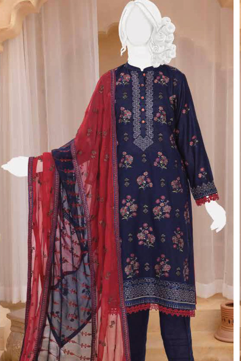 Modest Embroidered Khaddar Stitched 3 Piece Suit - 10050-Mar - MOD25WNT - Maroon - Winter Collection