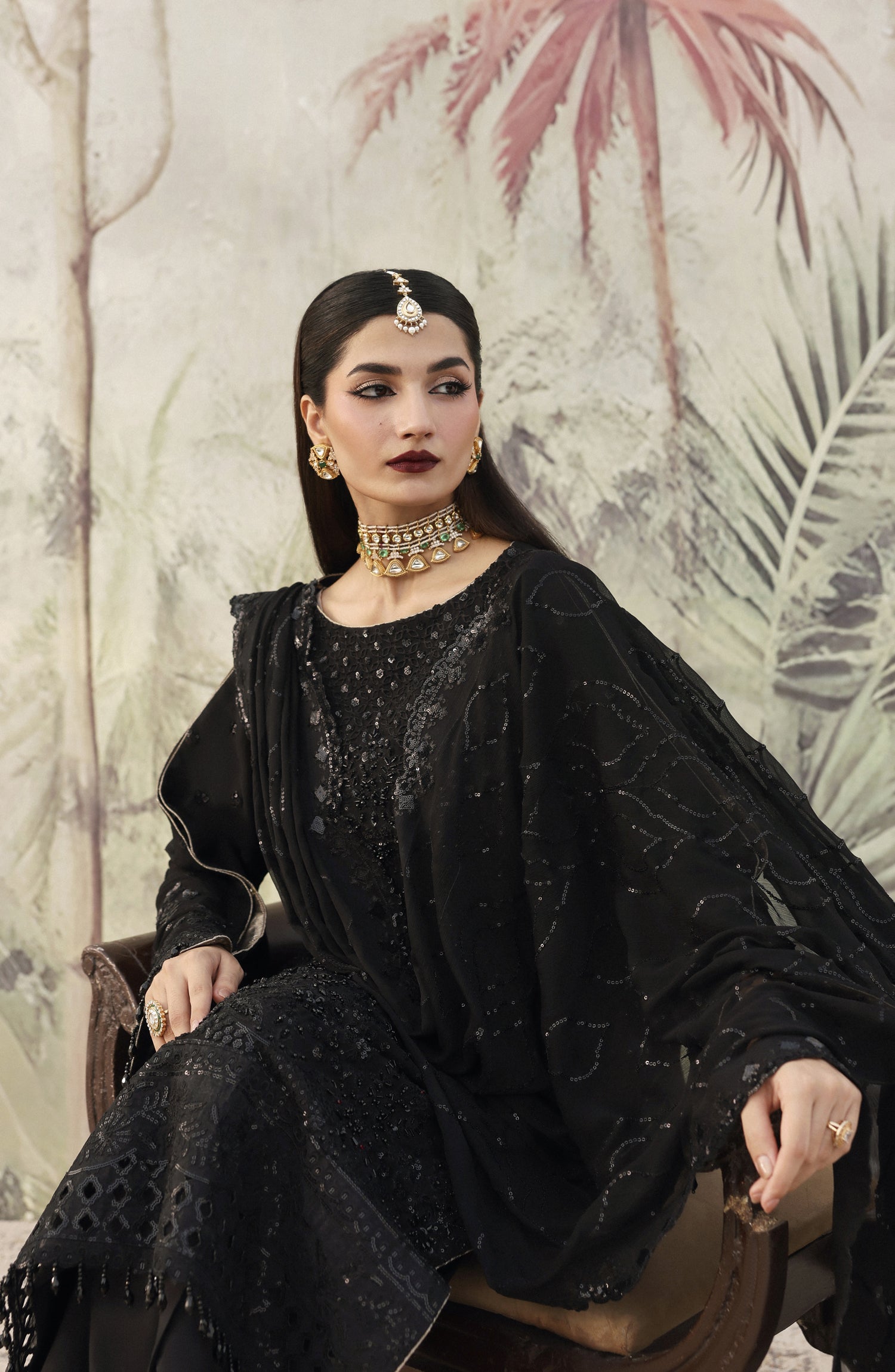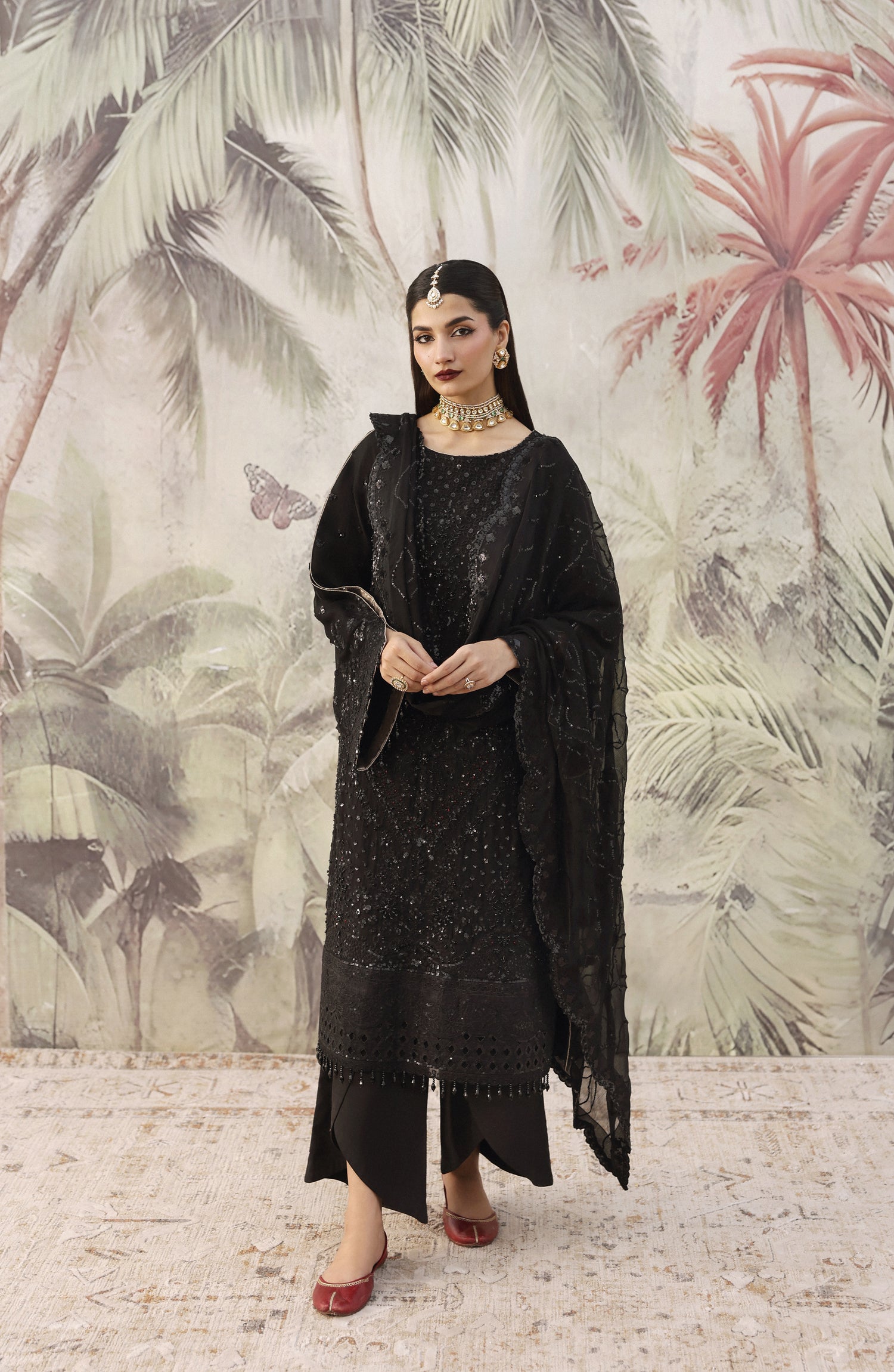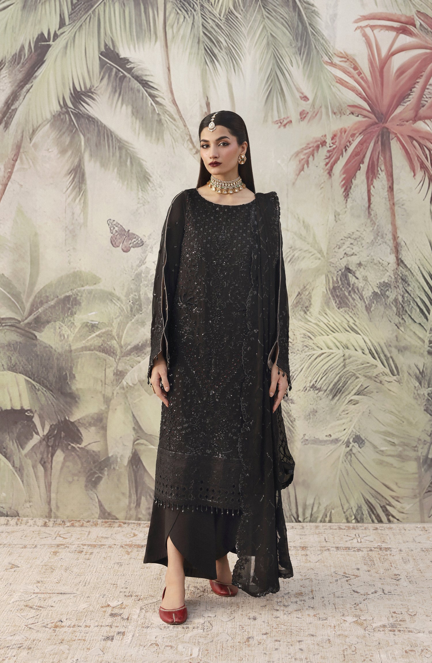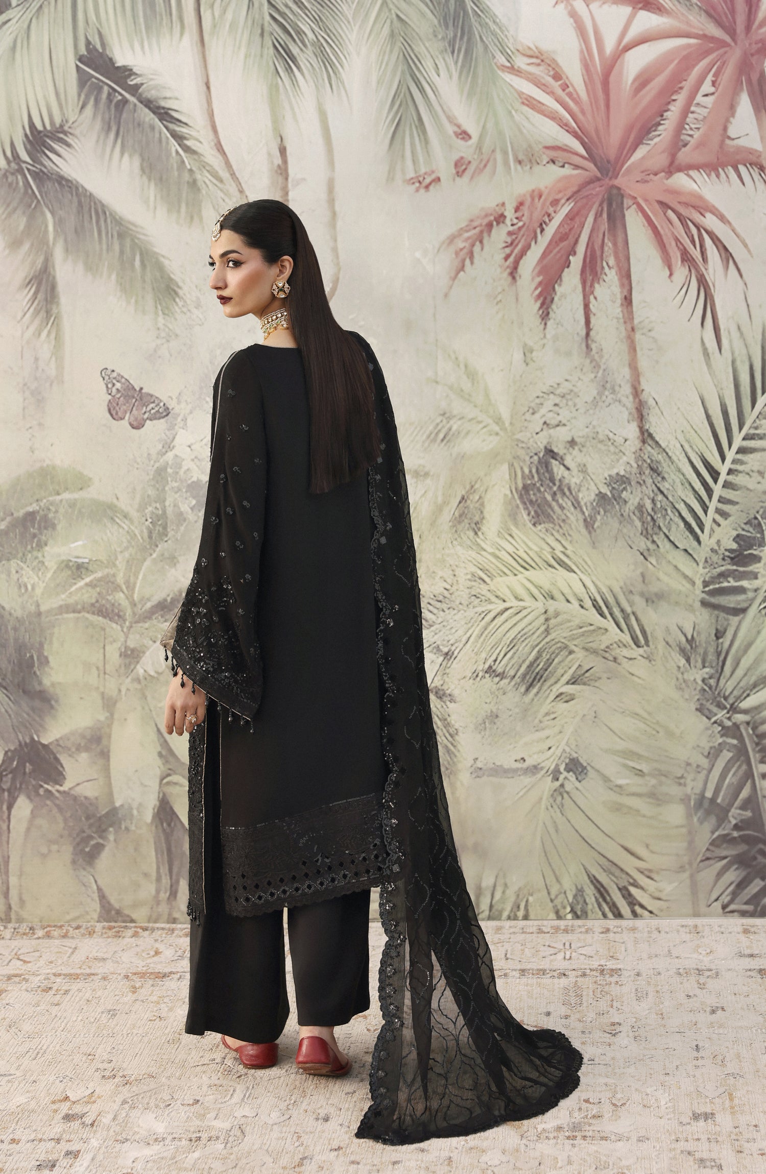 Chiffon Embroidered Sleeves.