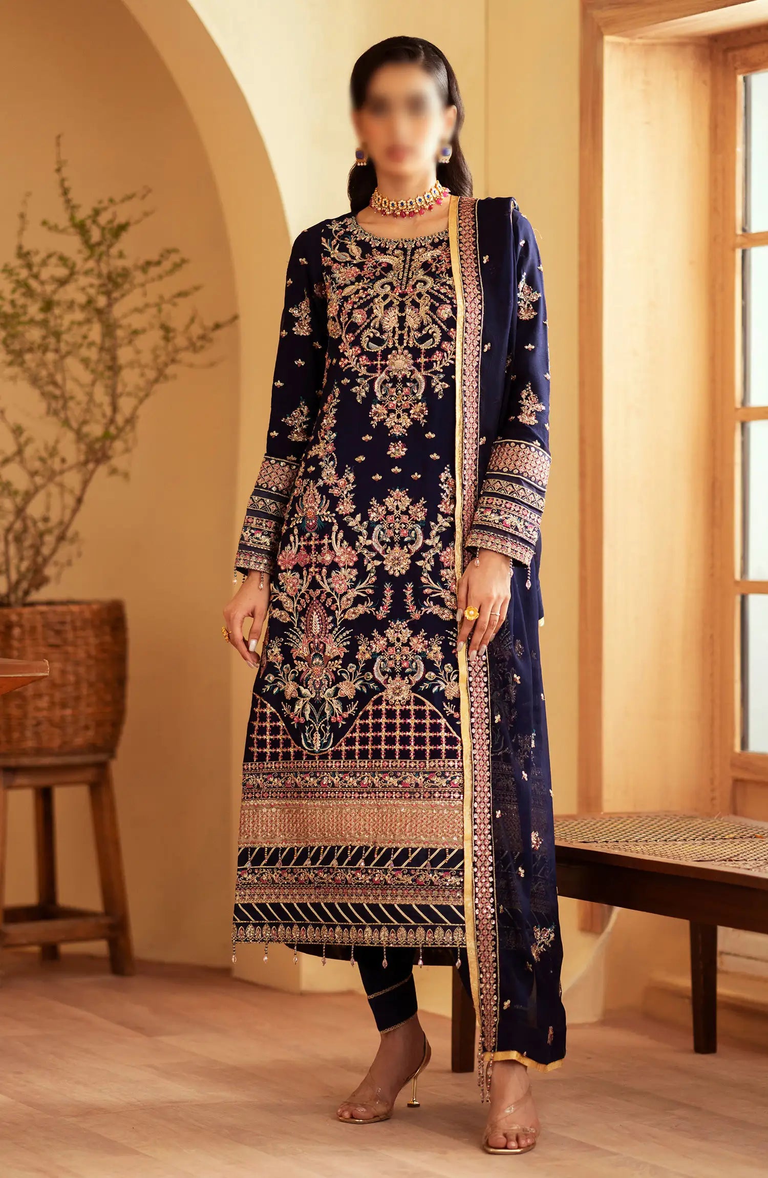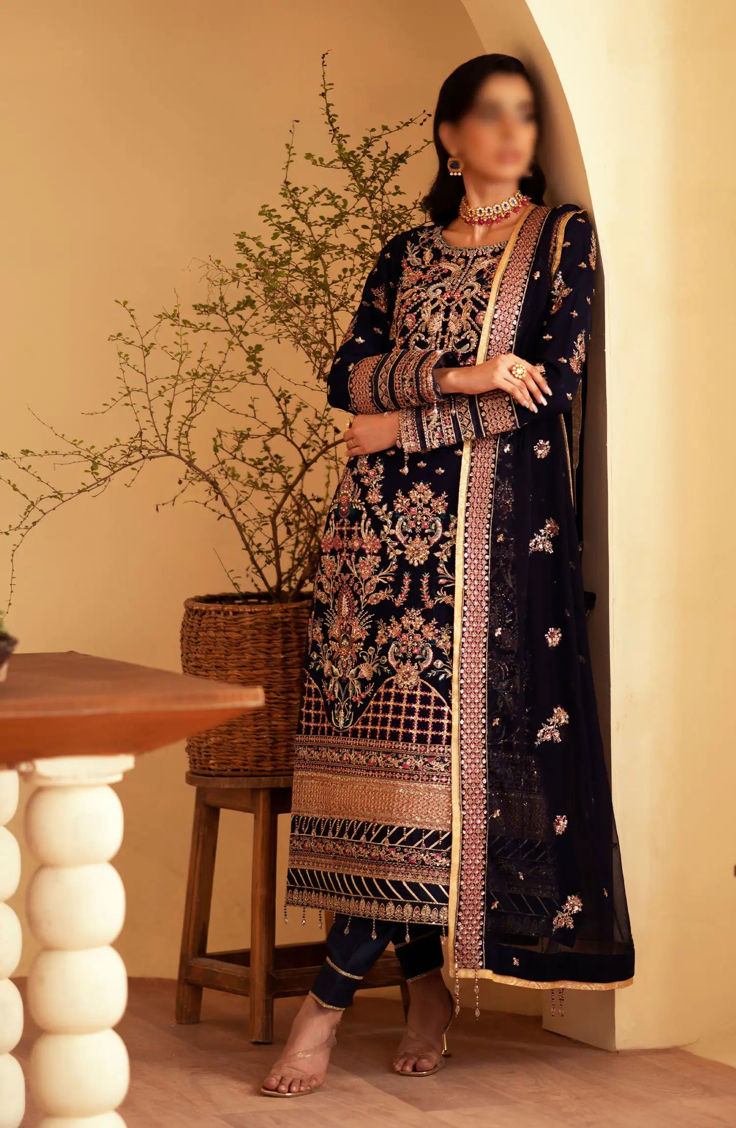 Romansiyyah Luxury Formals By Emaan Adeel has been styled in the image for photography and illustrative purposes.