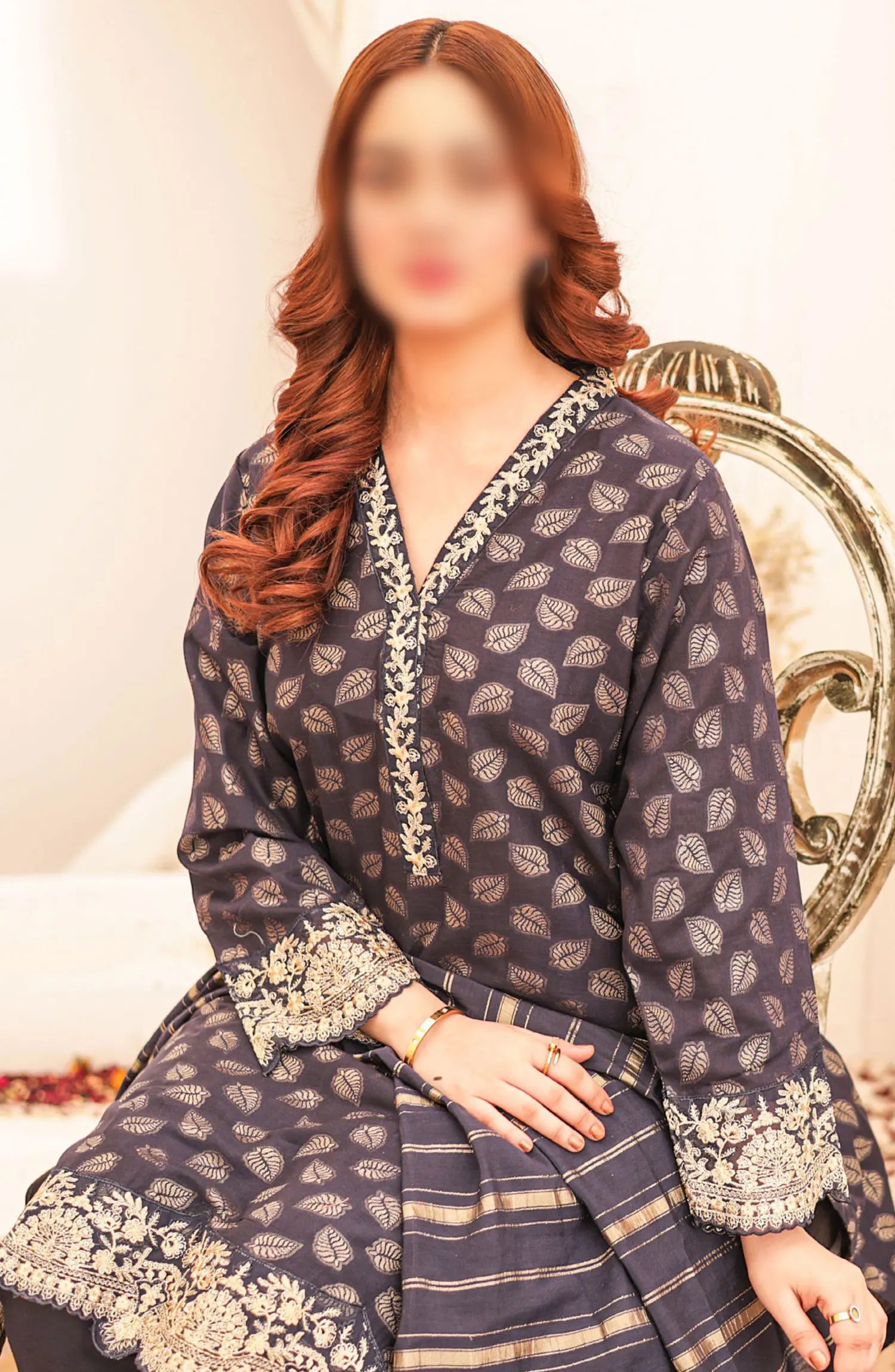 Ronaq Fancy Jacquard Stitched Collection has been styled in the image for photography and illustrative purposes.