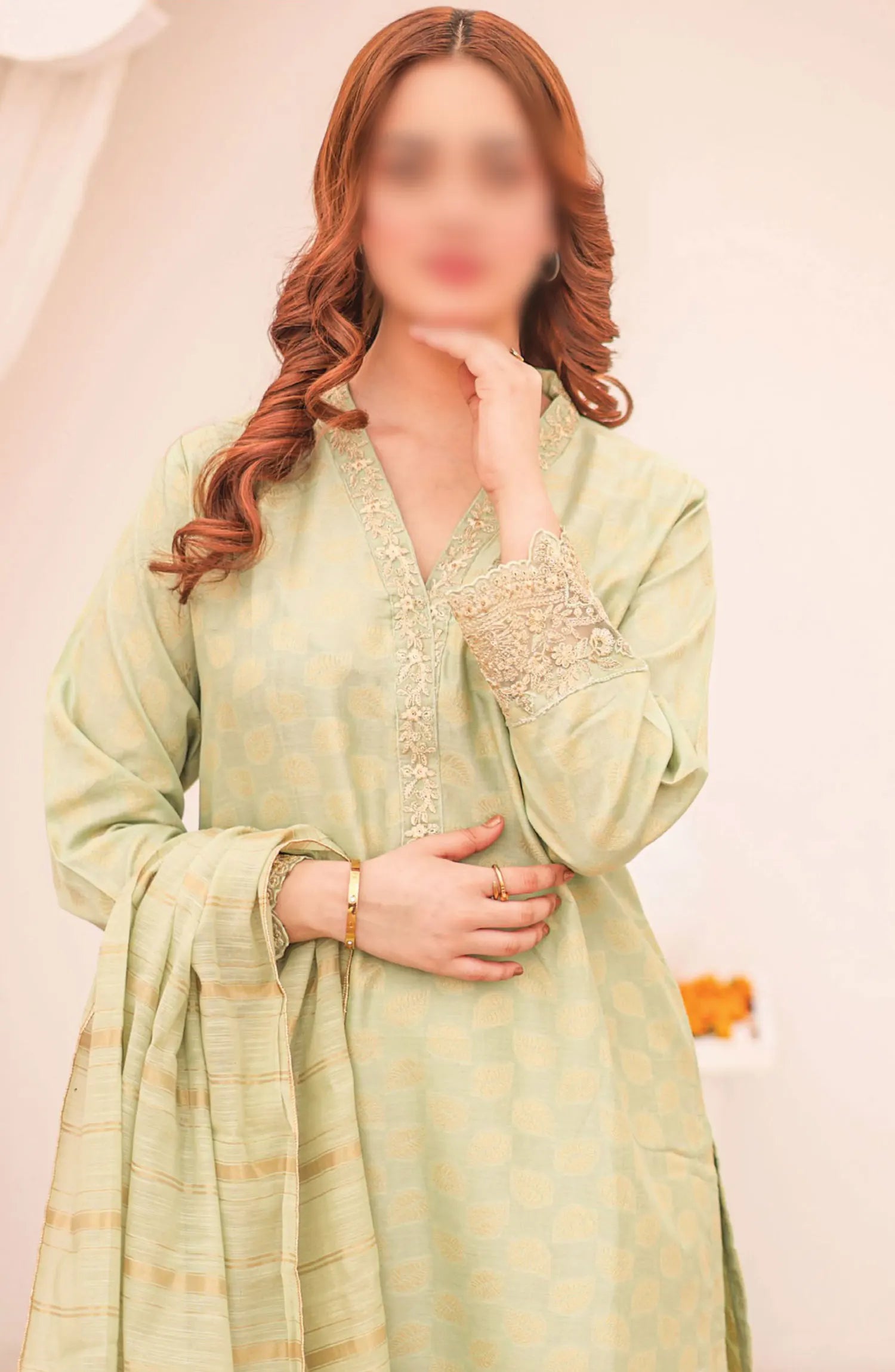 Ronaq Fancy Jacquard Stitched Collection has been styled in the image for photography and illustrative purposes.