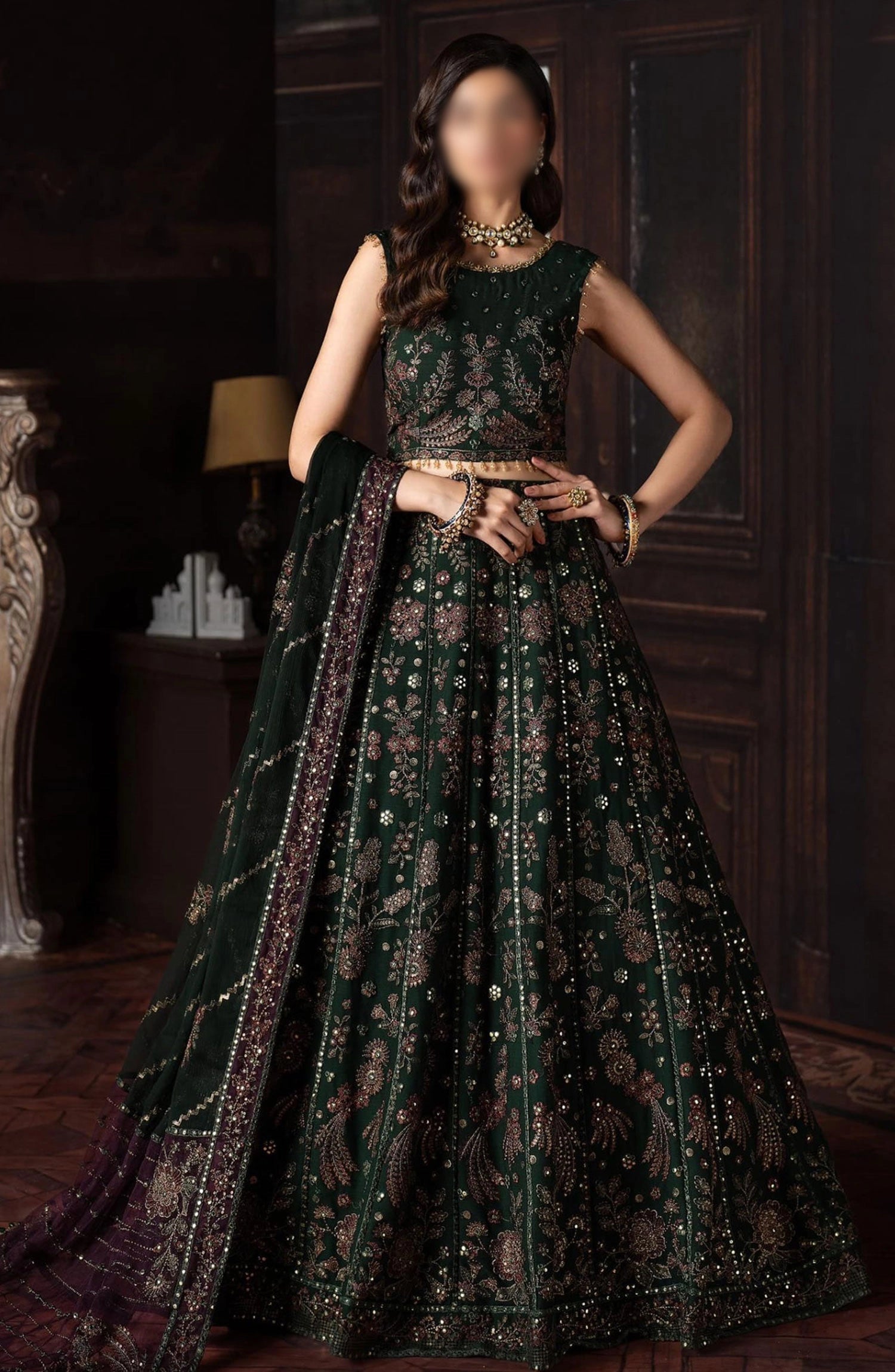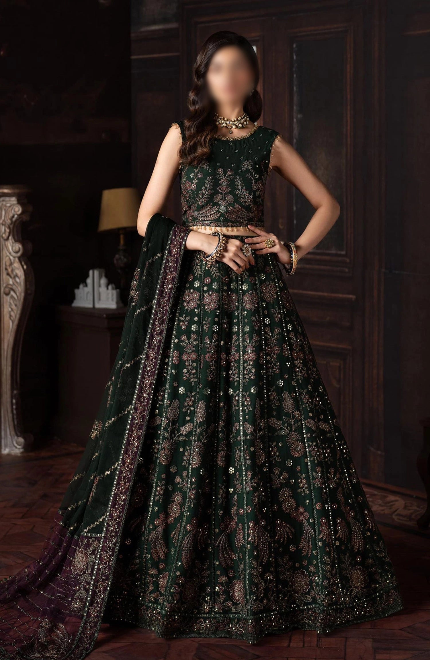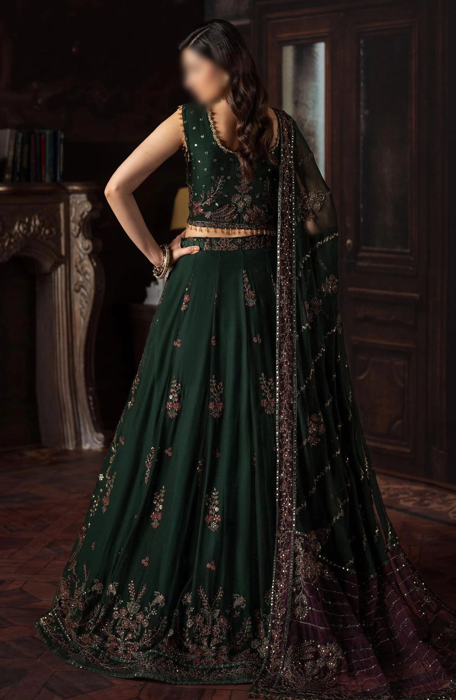 Lower Front & Back Lace: Sequins Embroidered Lace With Foil Work (Green)