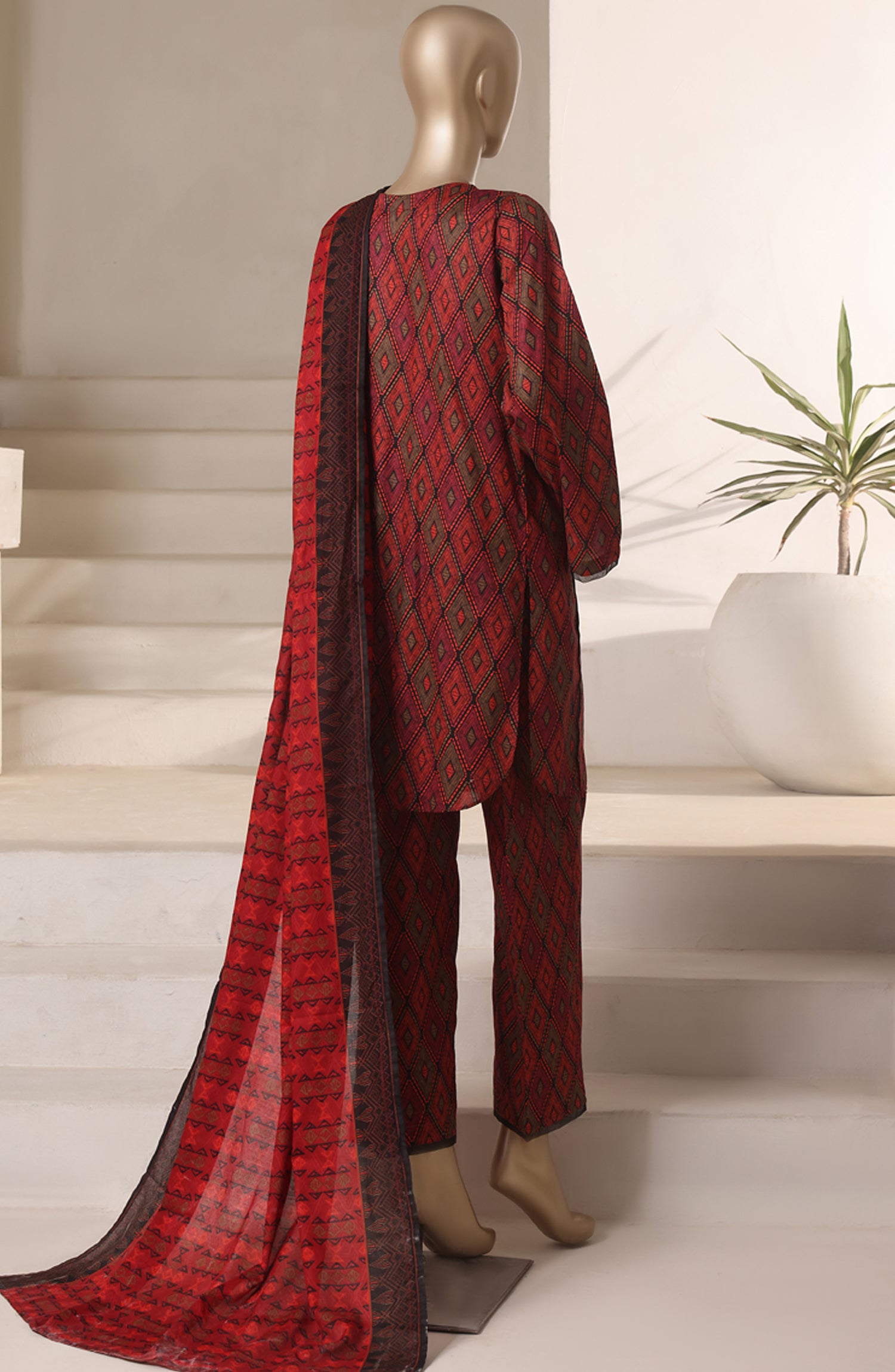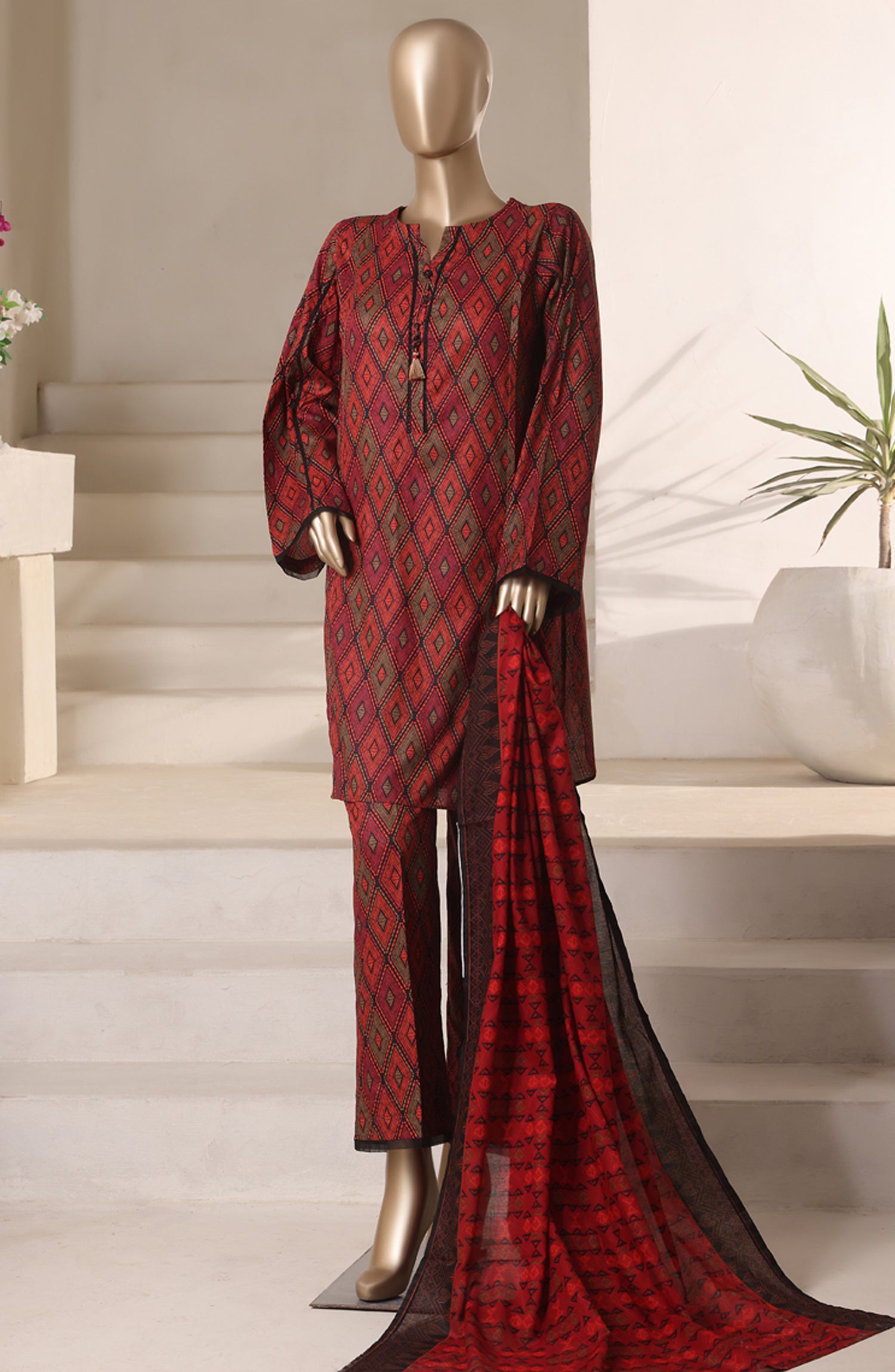 Rozaana Prints by HZ Textile Printed Cambric Stitched 3 Piece Suit - CAP-3P-802 Black Rust - HZ25RZN - Casual Collection