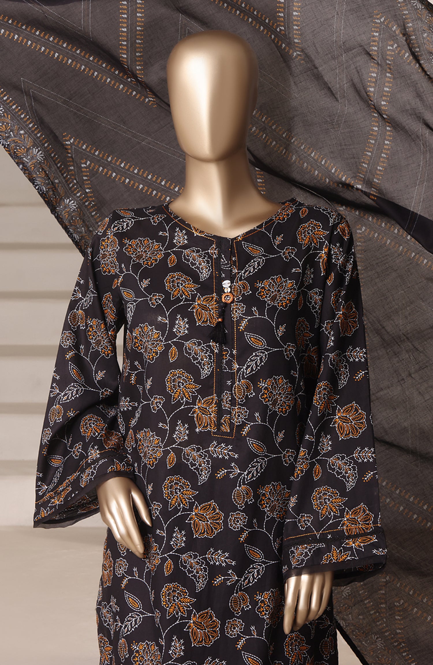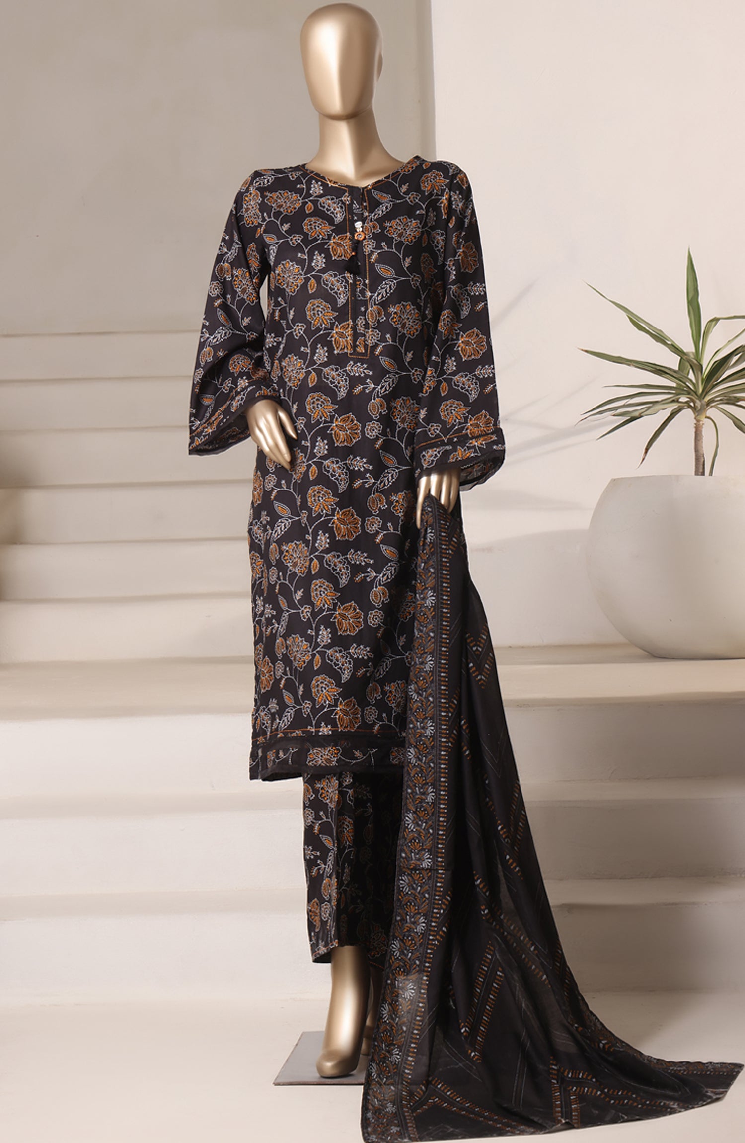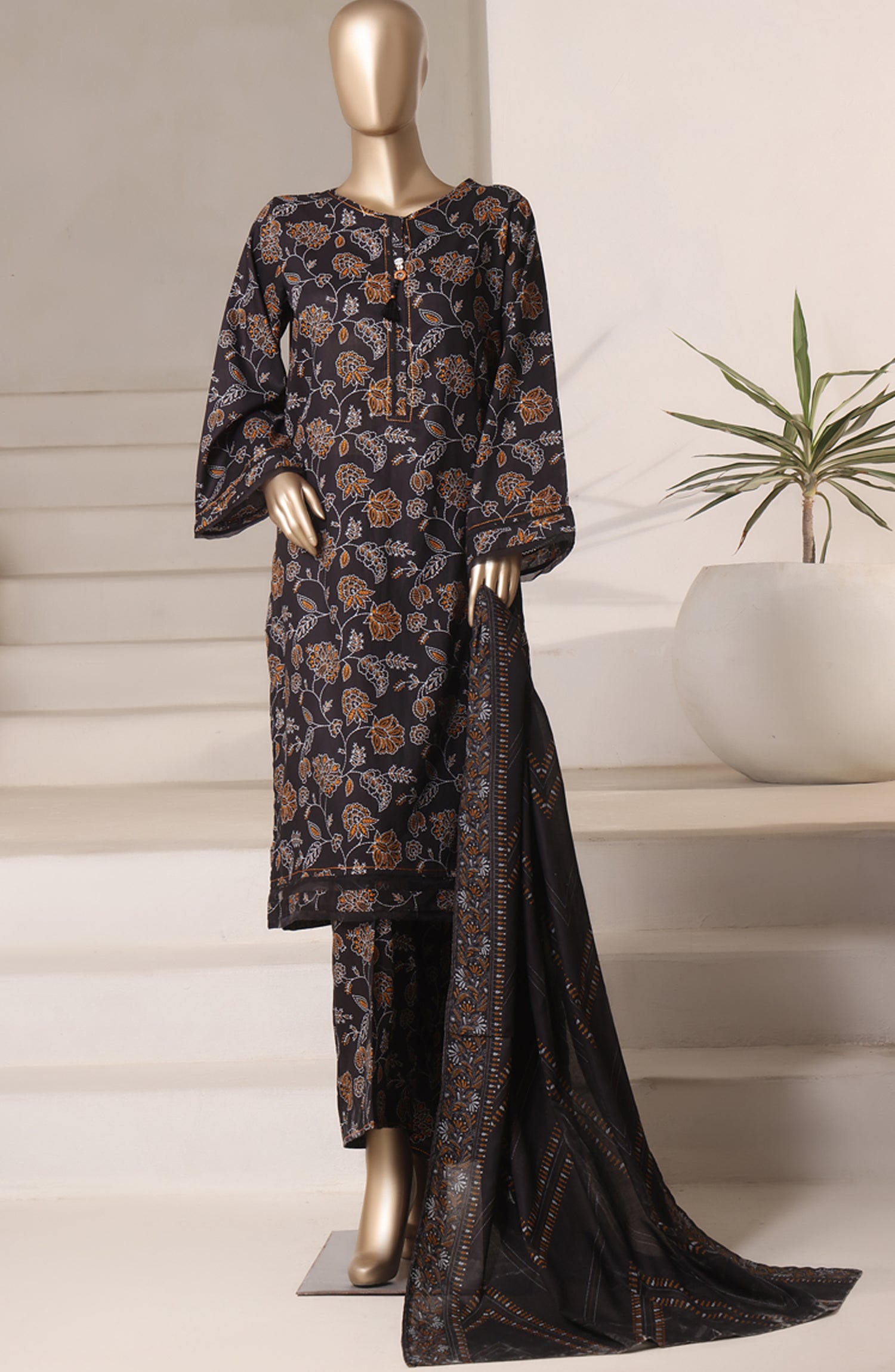 Rozaana Prints by HZ Textile Printed Cambric Stitched 3 Piece Suit - CAP-3P-810 Black Line Ant - HZ25RZN - Casual Collection
