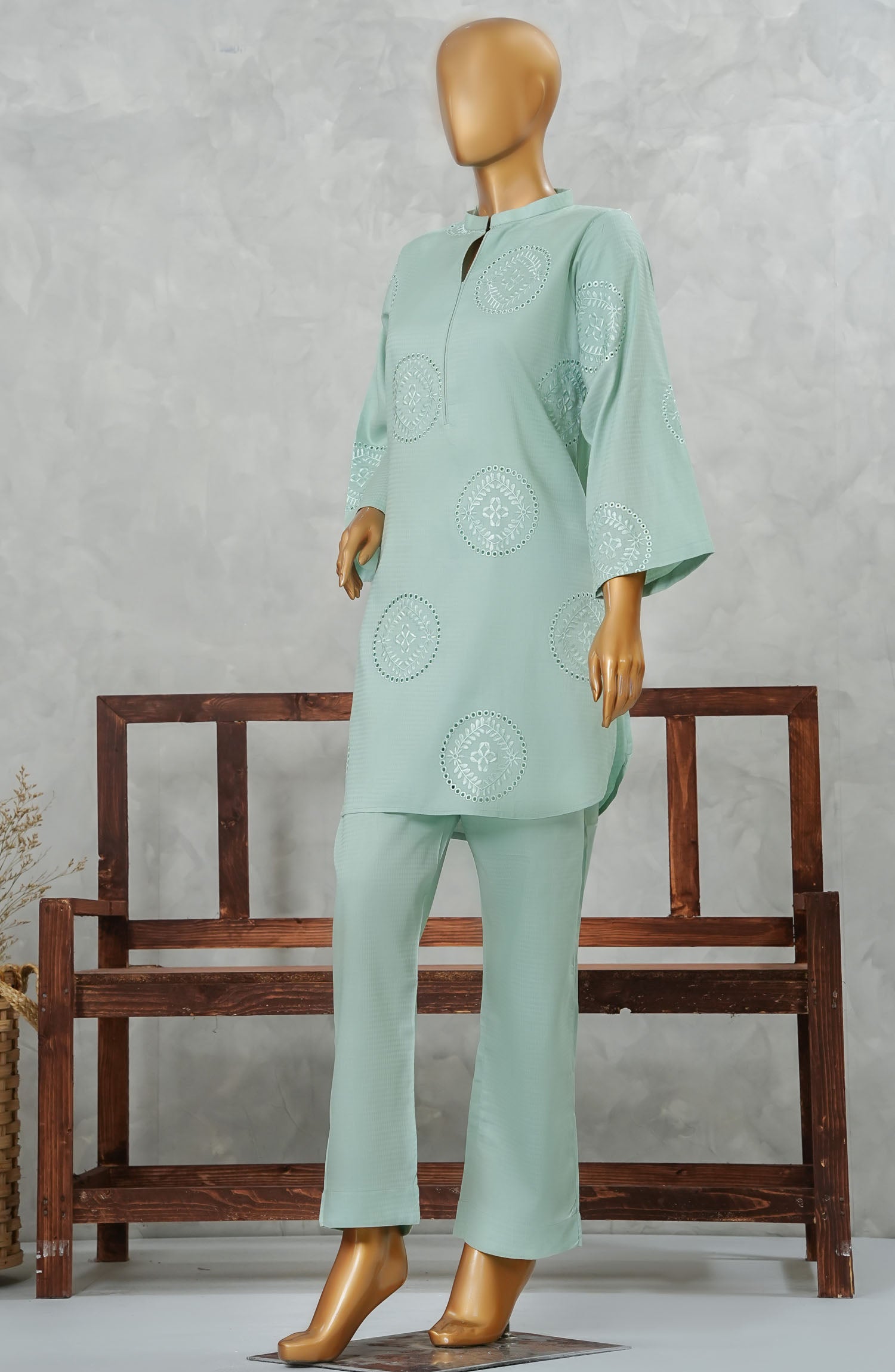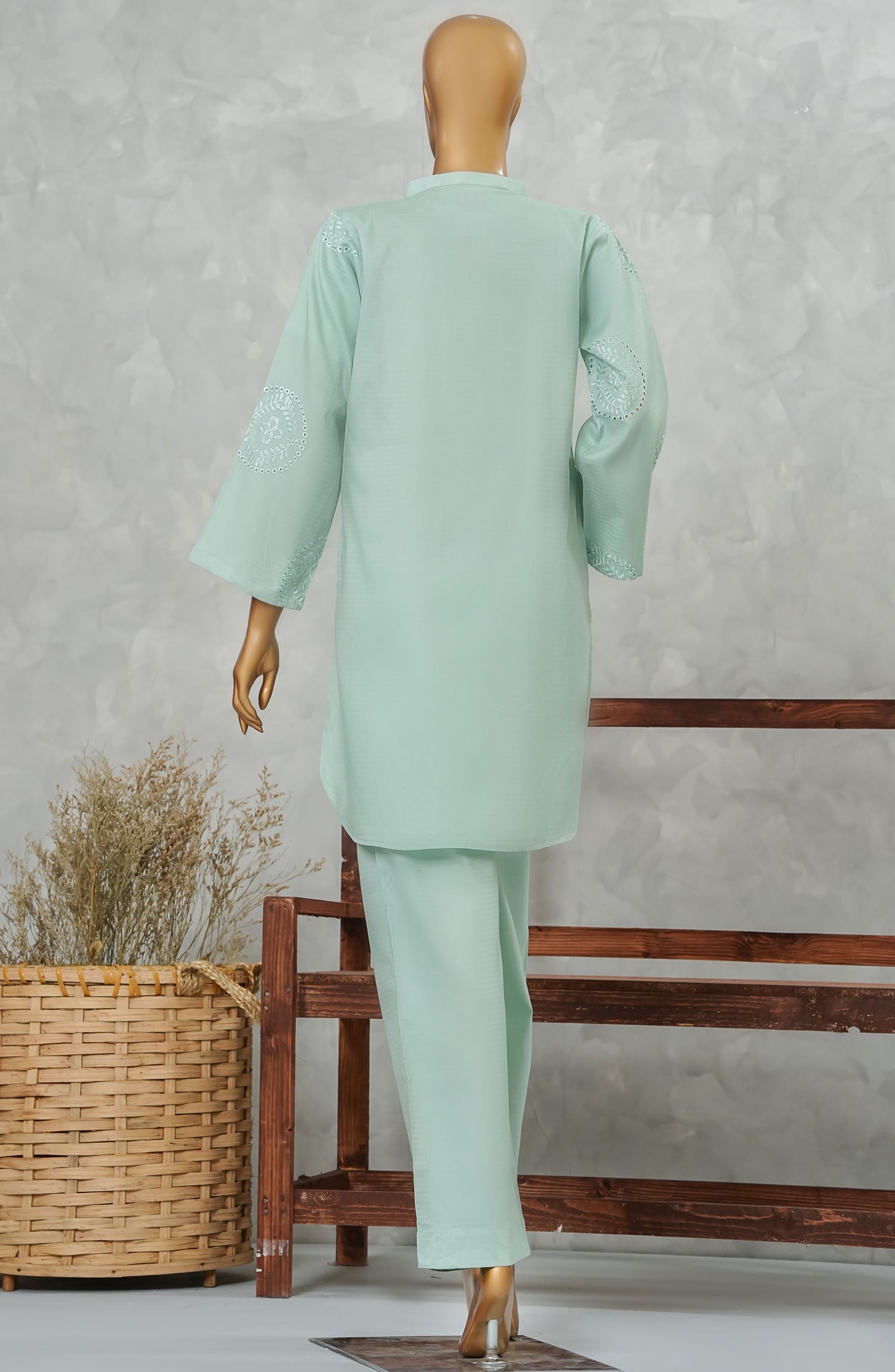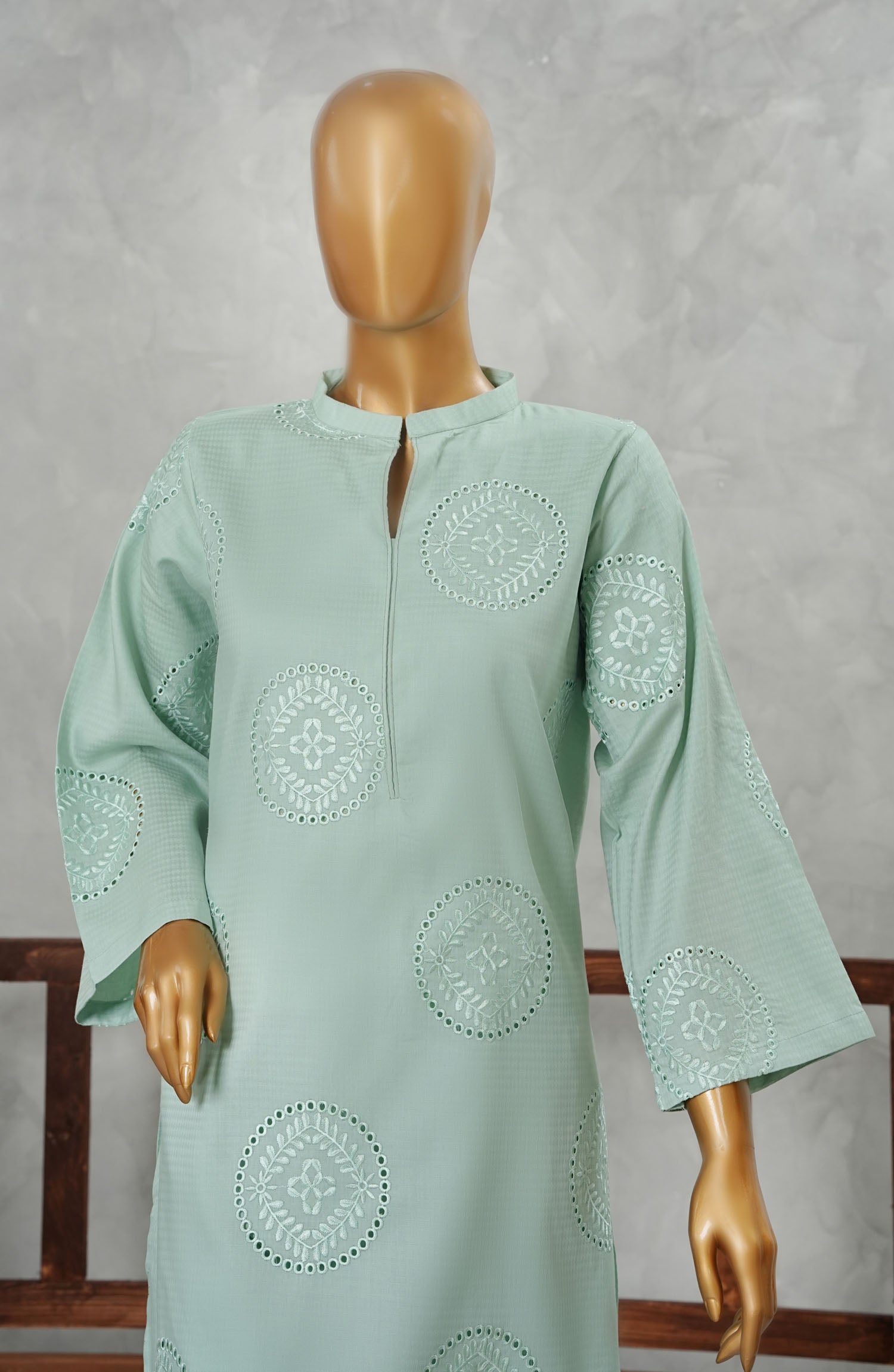 Exclusive Boring Embroidered Dyed Self Cotton Stitched Shirt