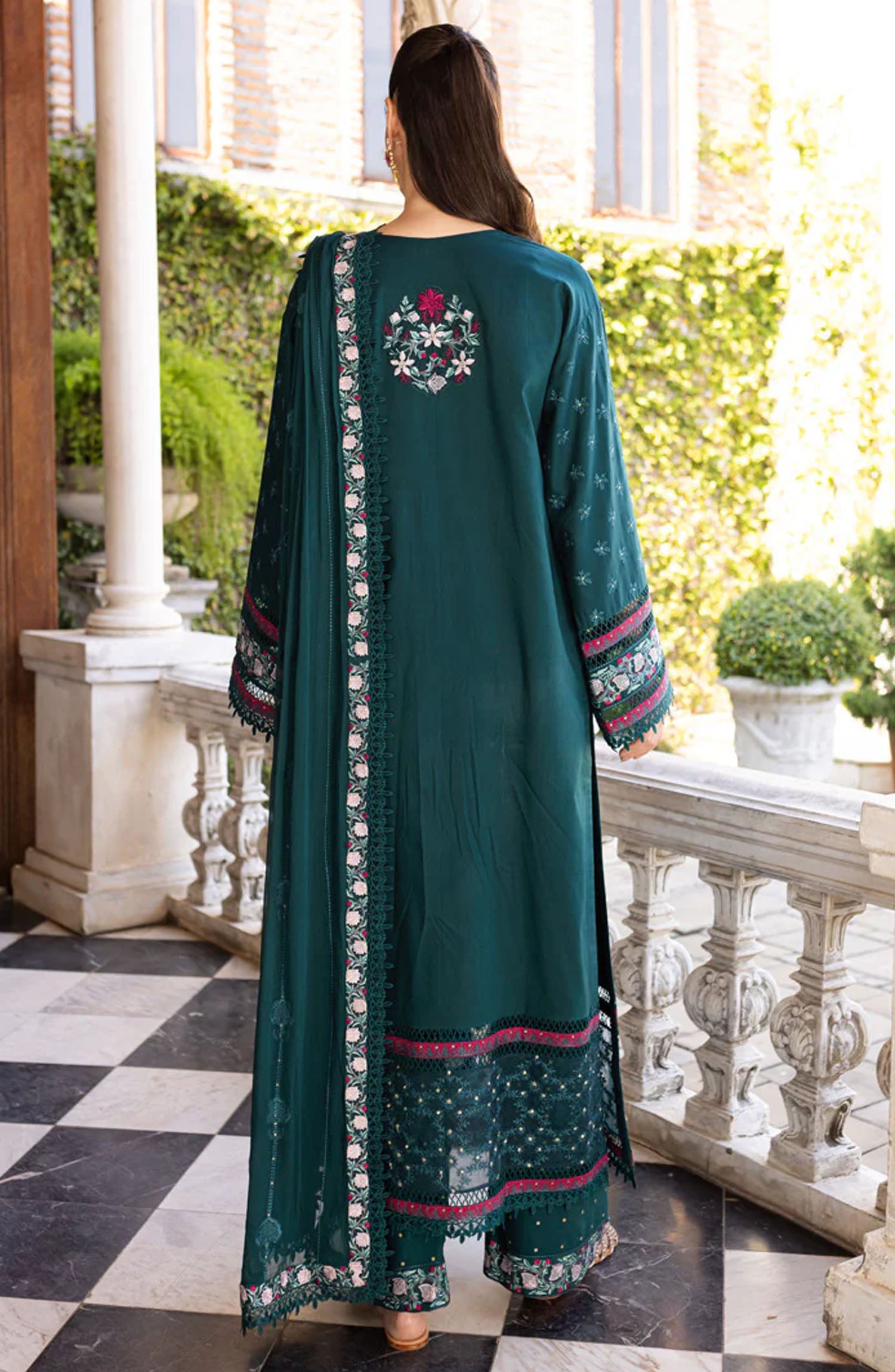 Home Ruhi by Marjjan Embroidered Lawn Unstitched 3 Piece Suit - MLL-03 B - MJ25RU - Sea Green - Summer Collection
