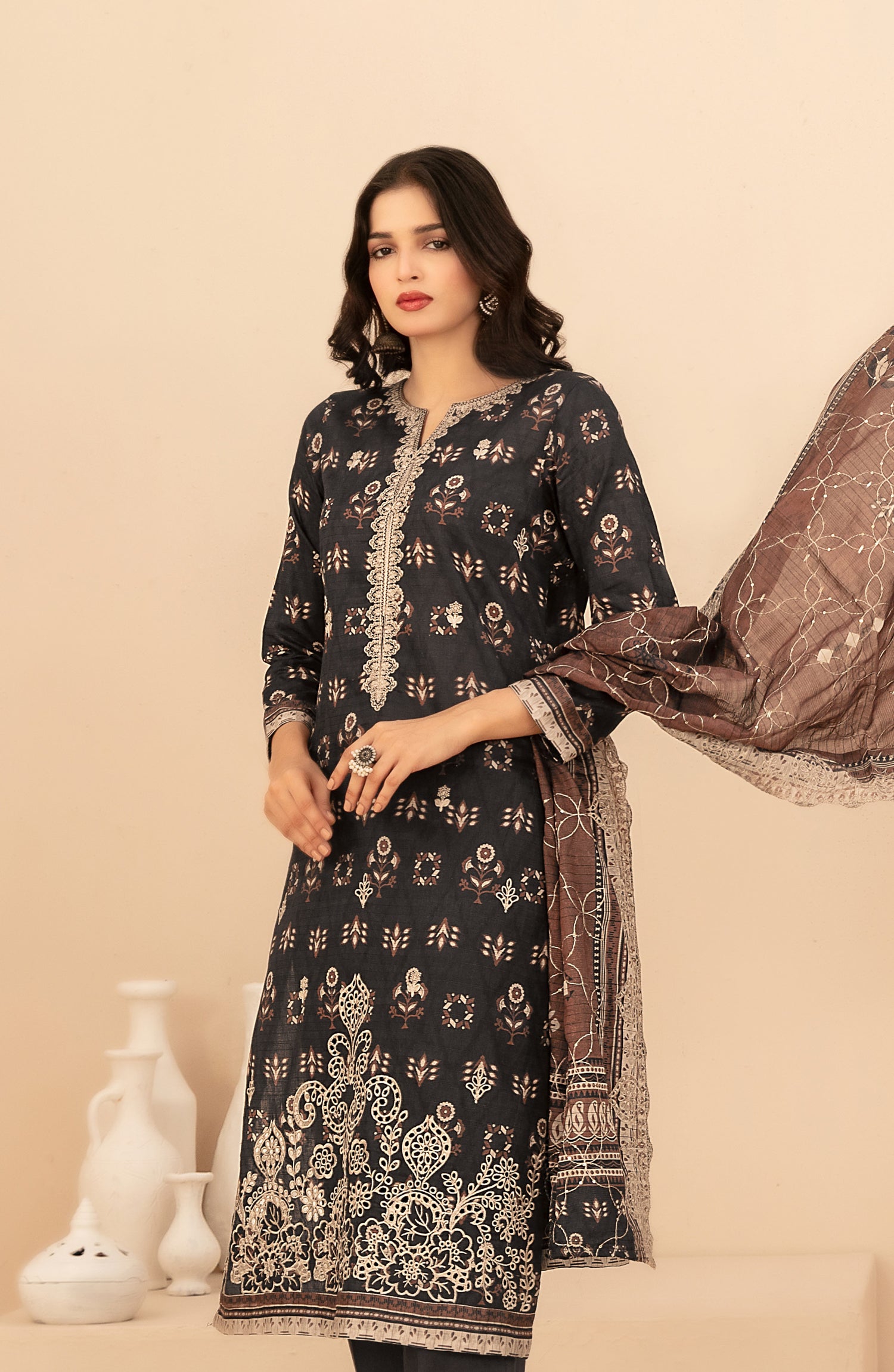 Cutwork Embroidered Digital Printed ND Lawn Dupatta