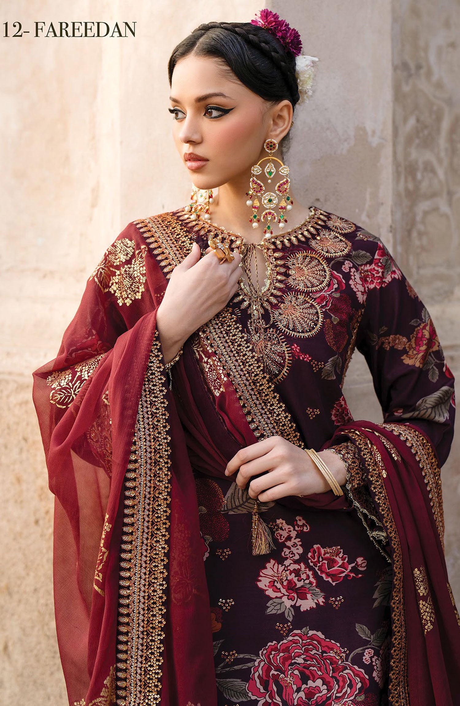 • Embroidered Gold Foil Chiffon Dupatta