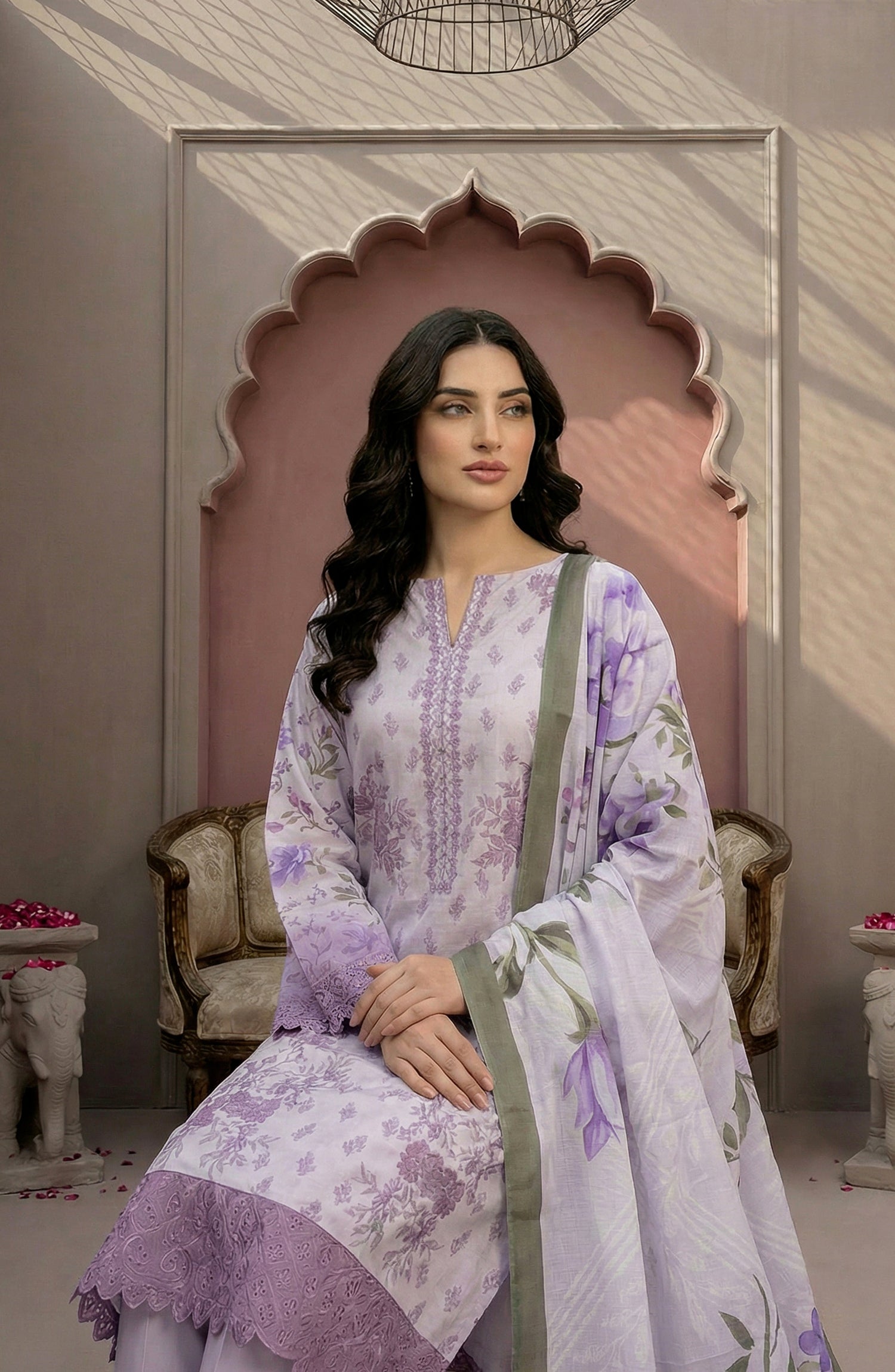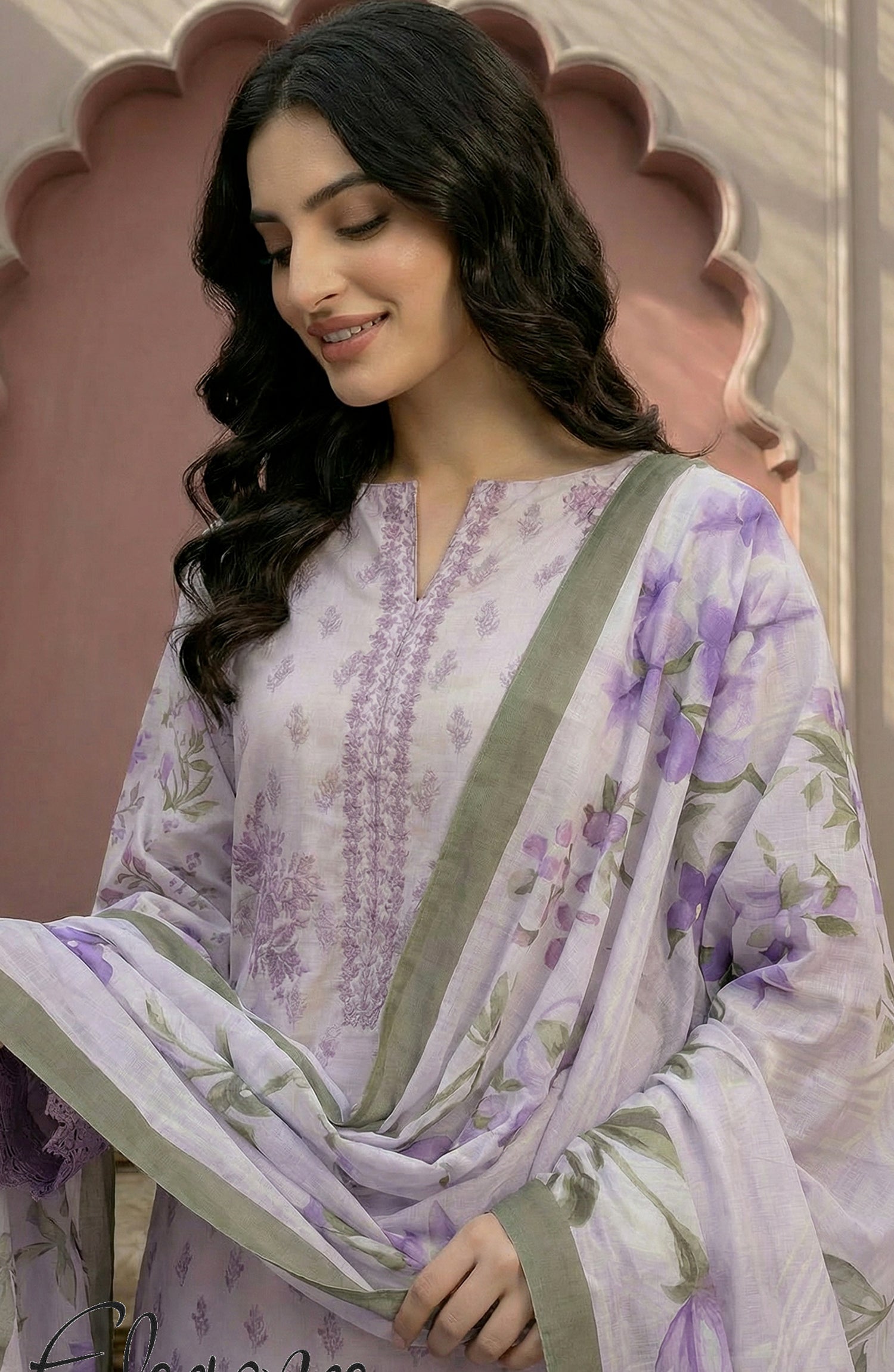 Digital Print Embroidered Shirt with Digital Print Embroidered Dupatta