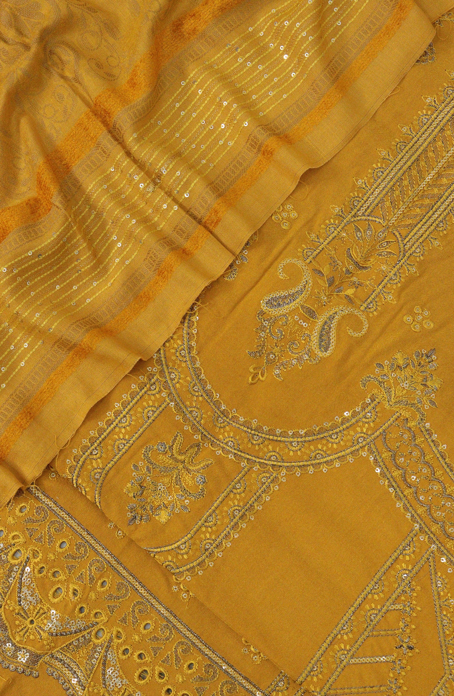 Rua by Casual Lite Embroidered Premium Linen Stitched 3 Piece Suit - D-01 Olive Mustard Hue - CL25RU - Dhani - Winter Collection