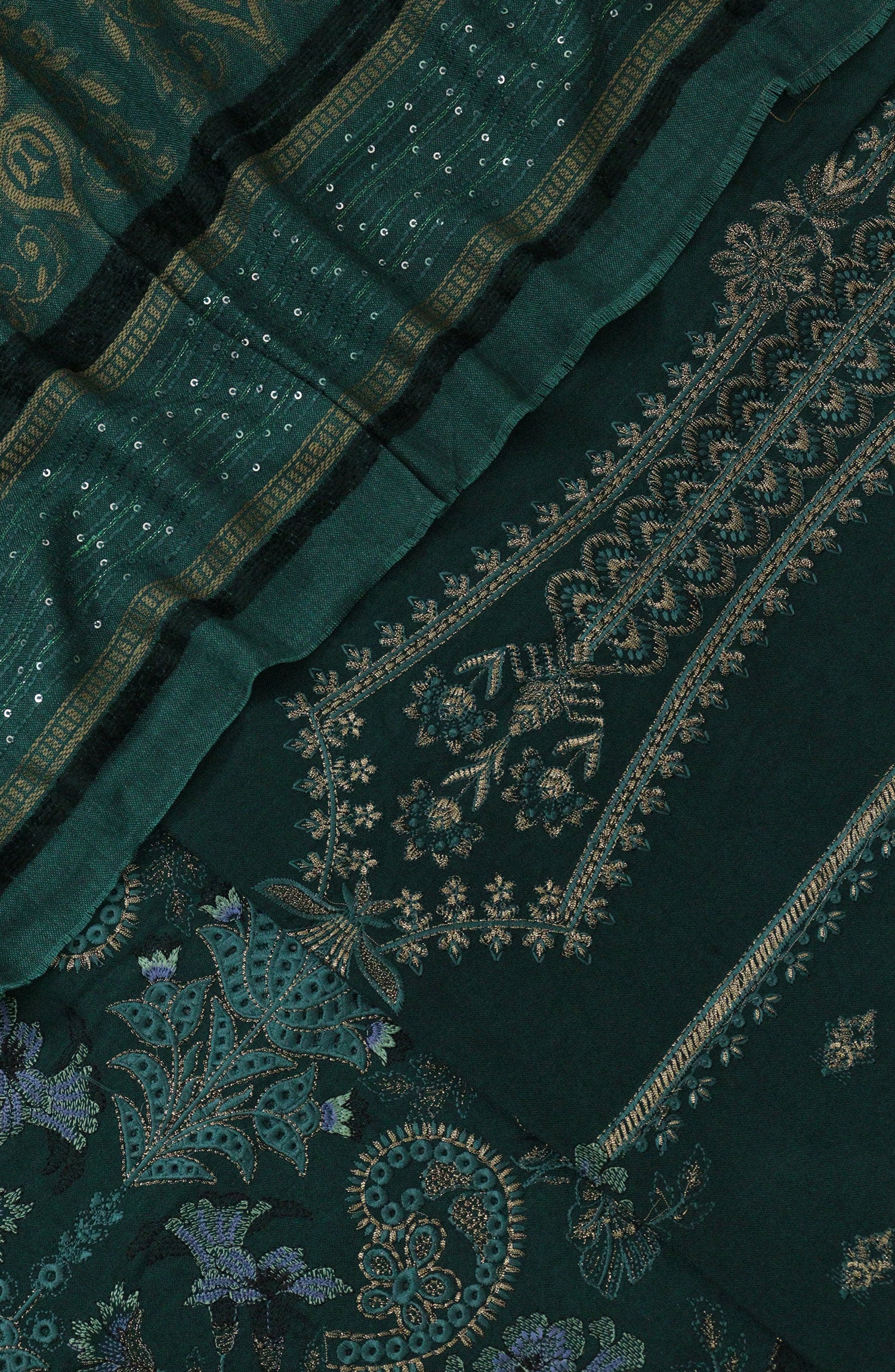 Rua by Casual Lite Embroidered Premium Linen Stitched 3 Piece Suit - D-04 Emerald Verse - CL25RU - Green - Winter Collection
