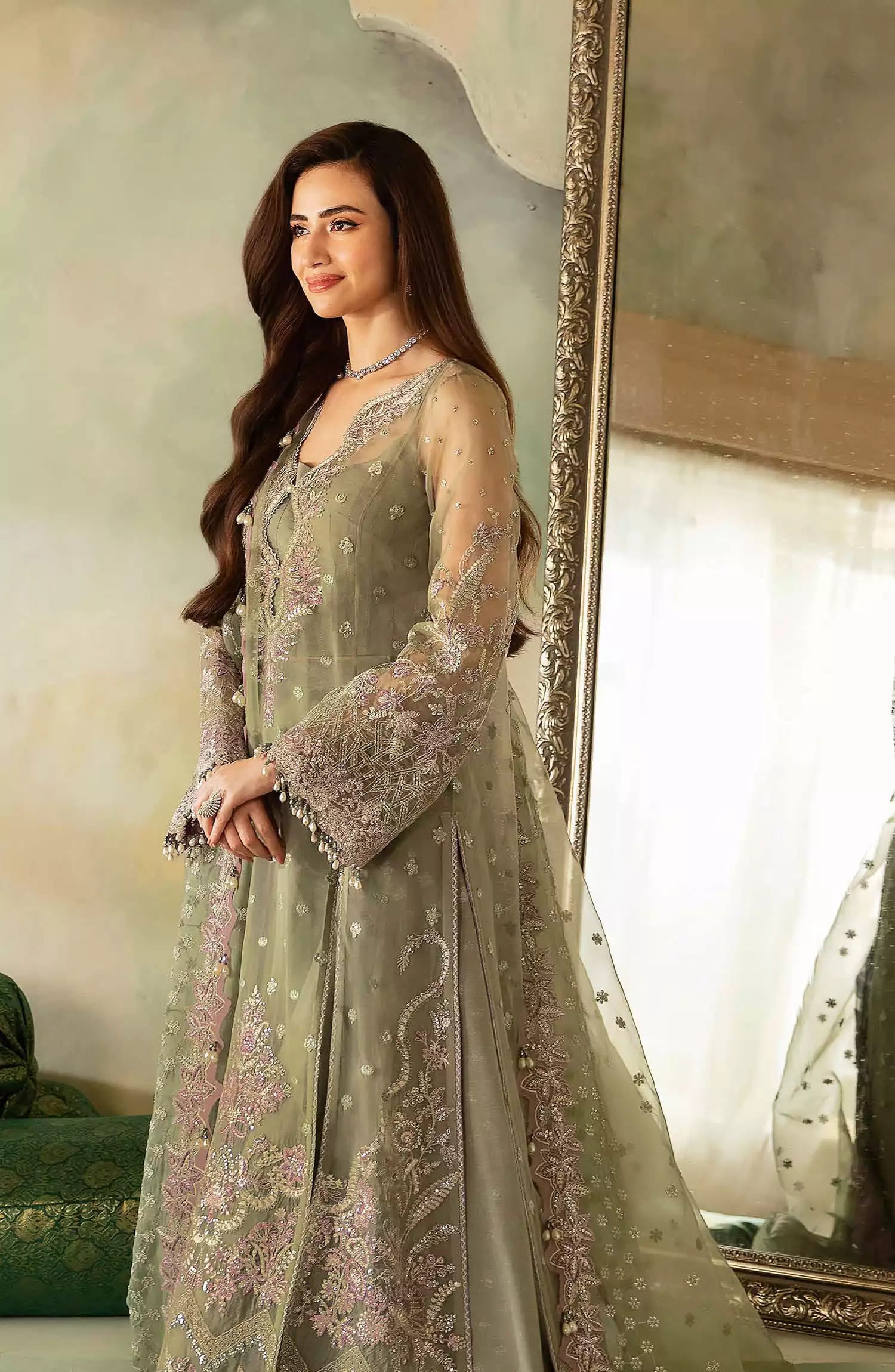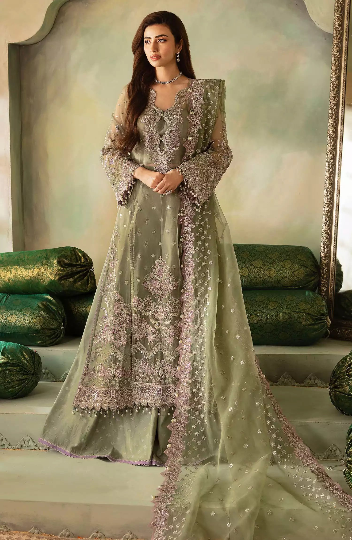 Saad Shaikh Elena Wedding Unstitched Formals Collection has been styled in the image for photography and illustrative purposes.