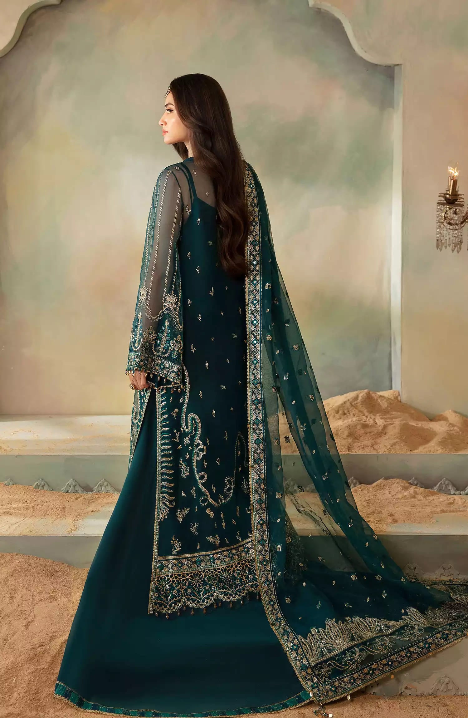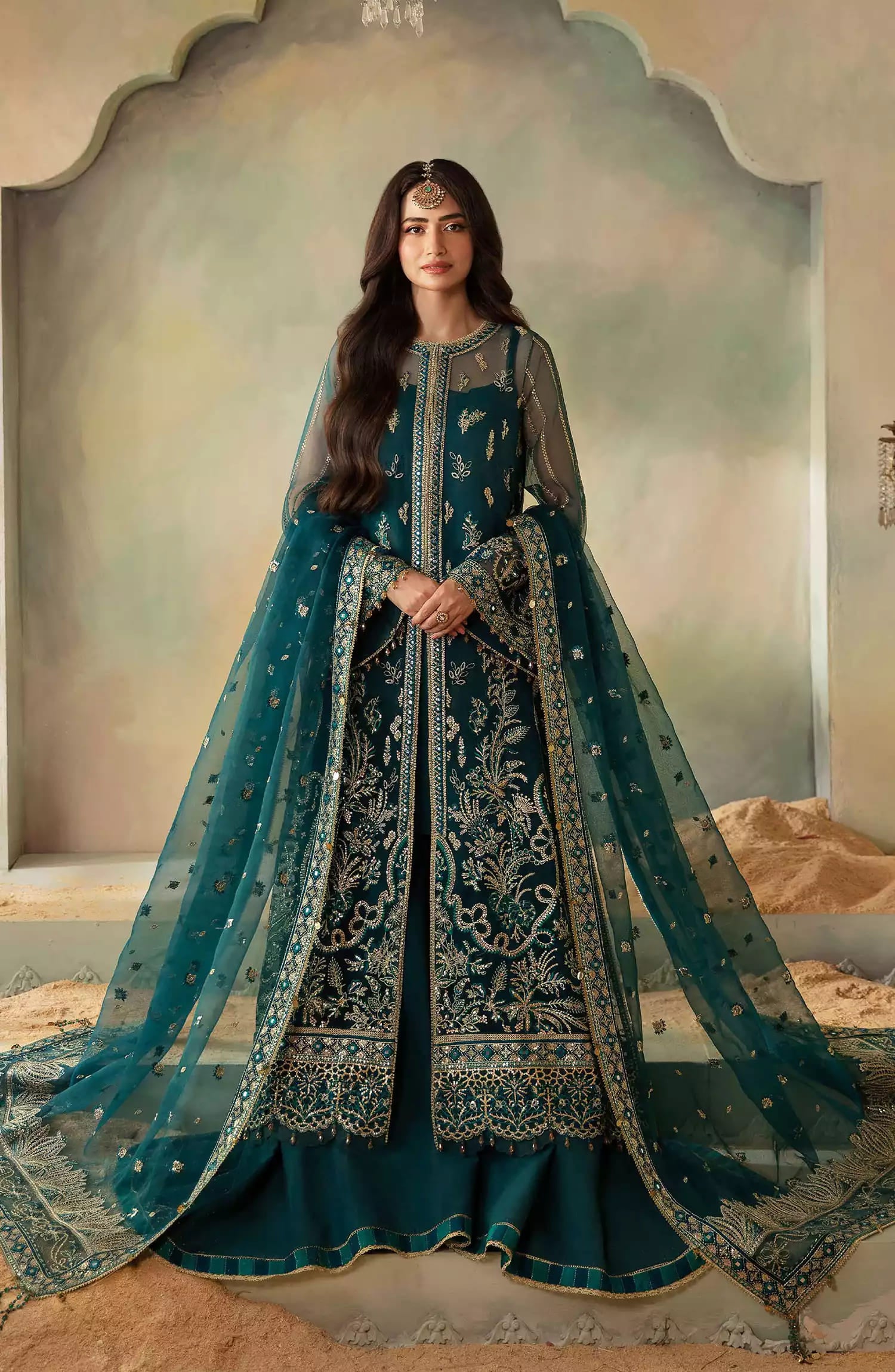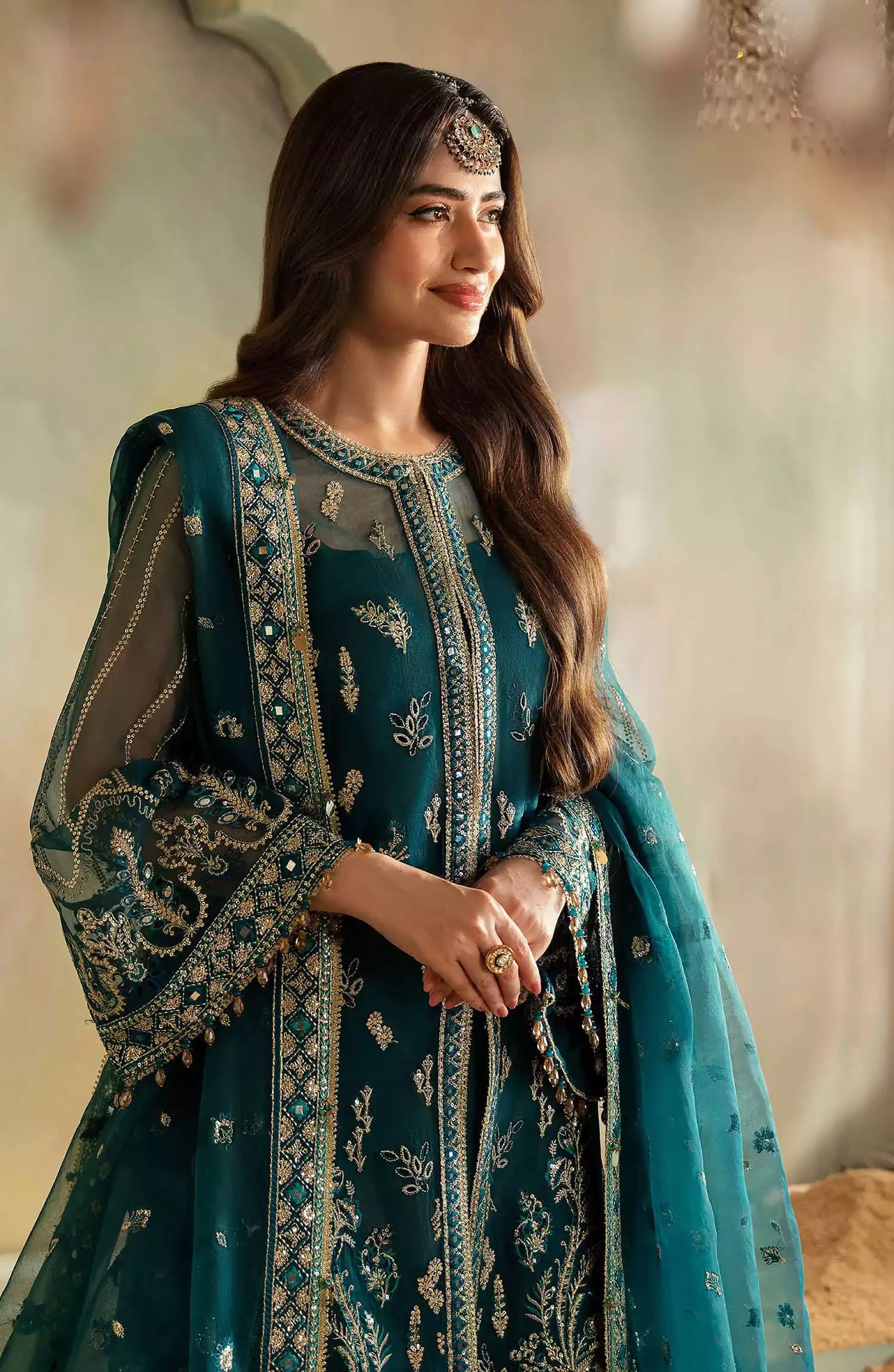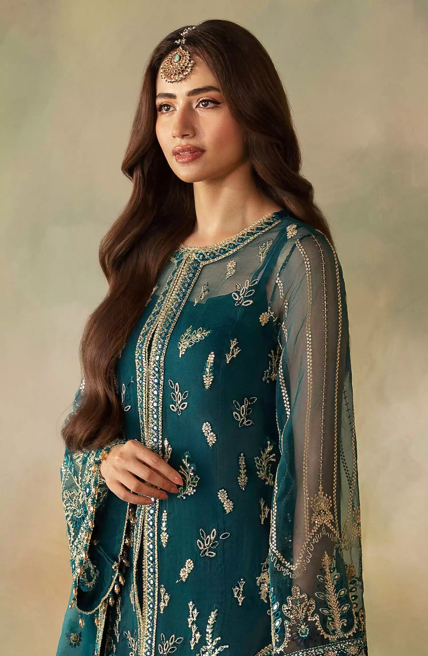 Saad Shaikh Elena Wedding Unstitched Formals Collection has been styled in the image for photography and illustrative purposes.