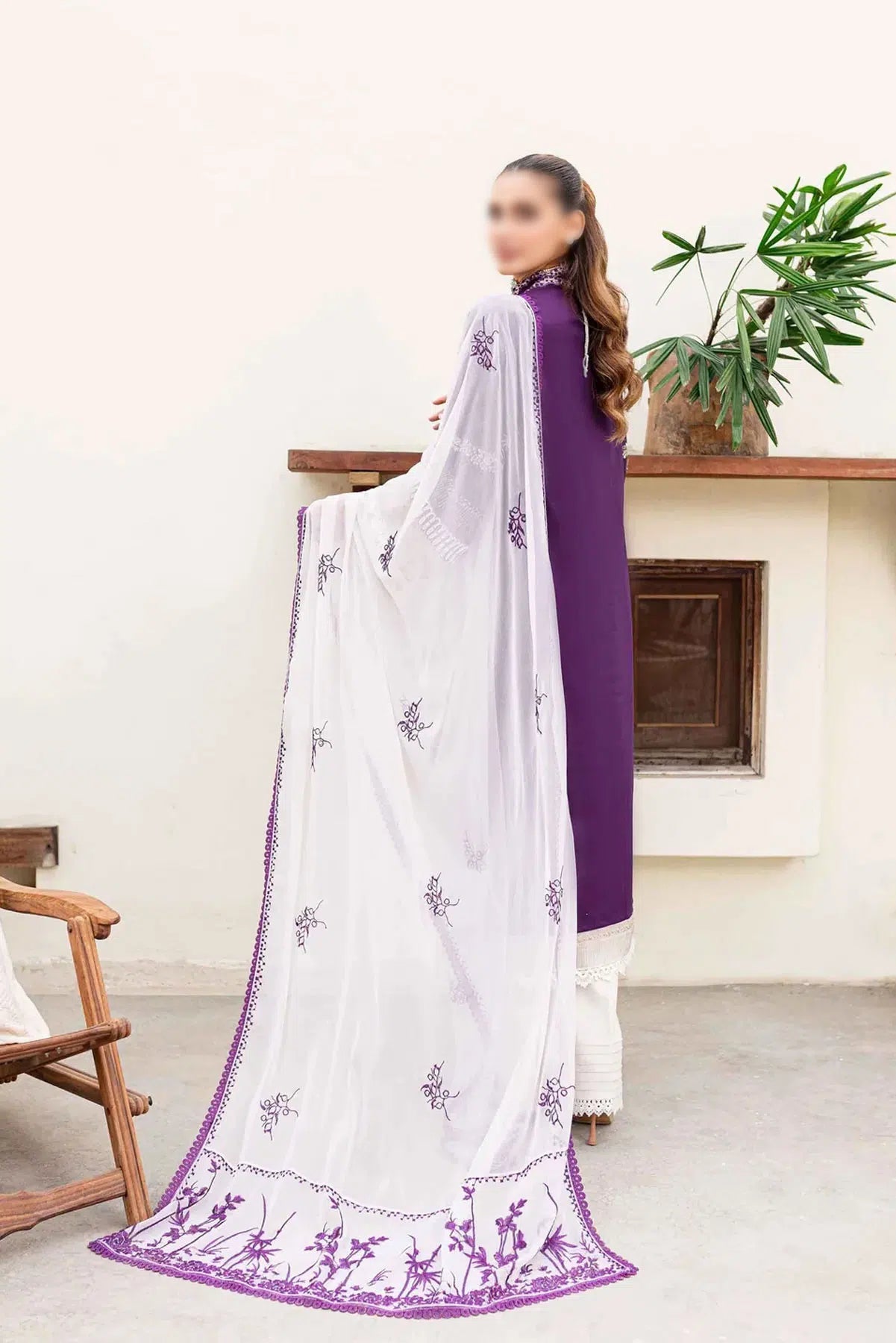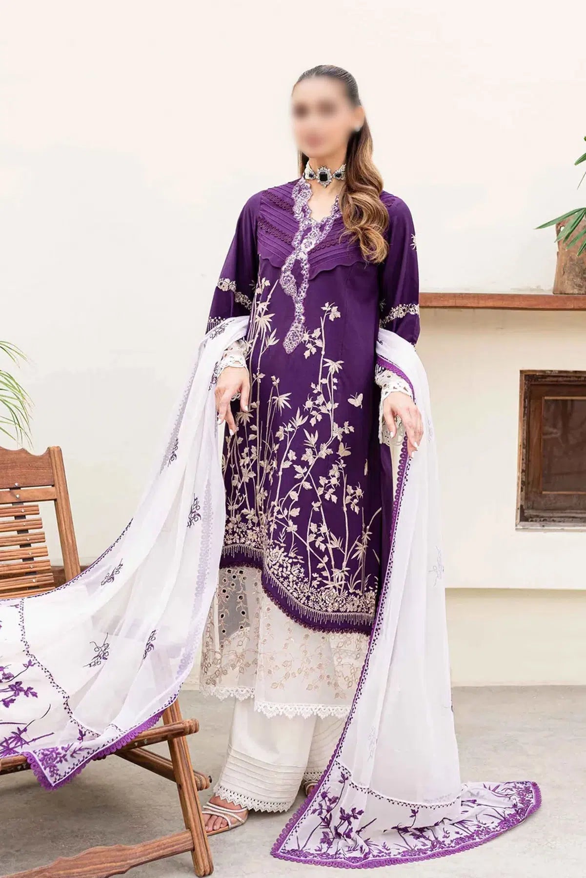 EMBROIDERED FRONT LEFT PANEL ON PLUM LAWN FABRIC W-13" 01
