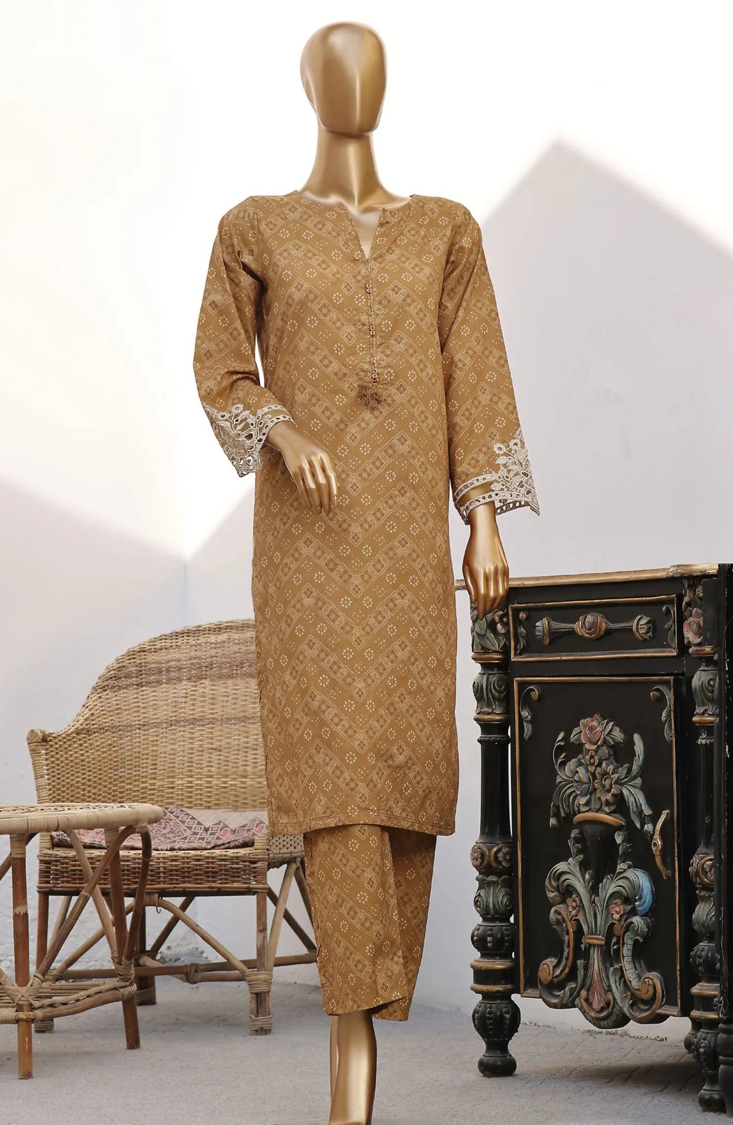 SADABAHAR 2Pcs Chunri Cutwork Co-ords Collection 2024 has been styled in the image for photography and illustrative purposes.
