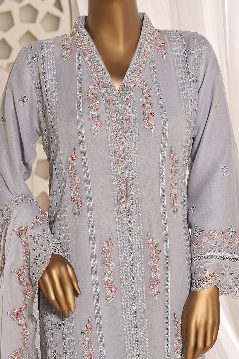 Modest Embroidered Chiffon Stitched 3 Piece Suit - 9825-Pch - MOD25PRF - Peach - Festive Girls Collection